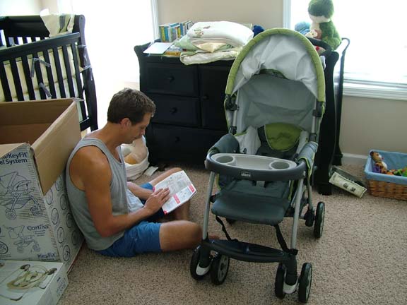 David worked on putting the stroller together this morning. I think he has it all figured out (assembly, disassembly, etc.) Of course it will take me much longer to be able to do it – I am about the least mechanically inclined person on the planet.