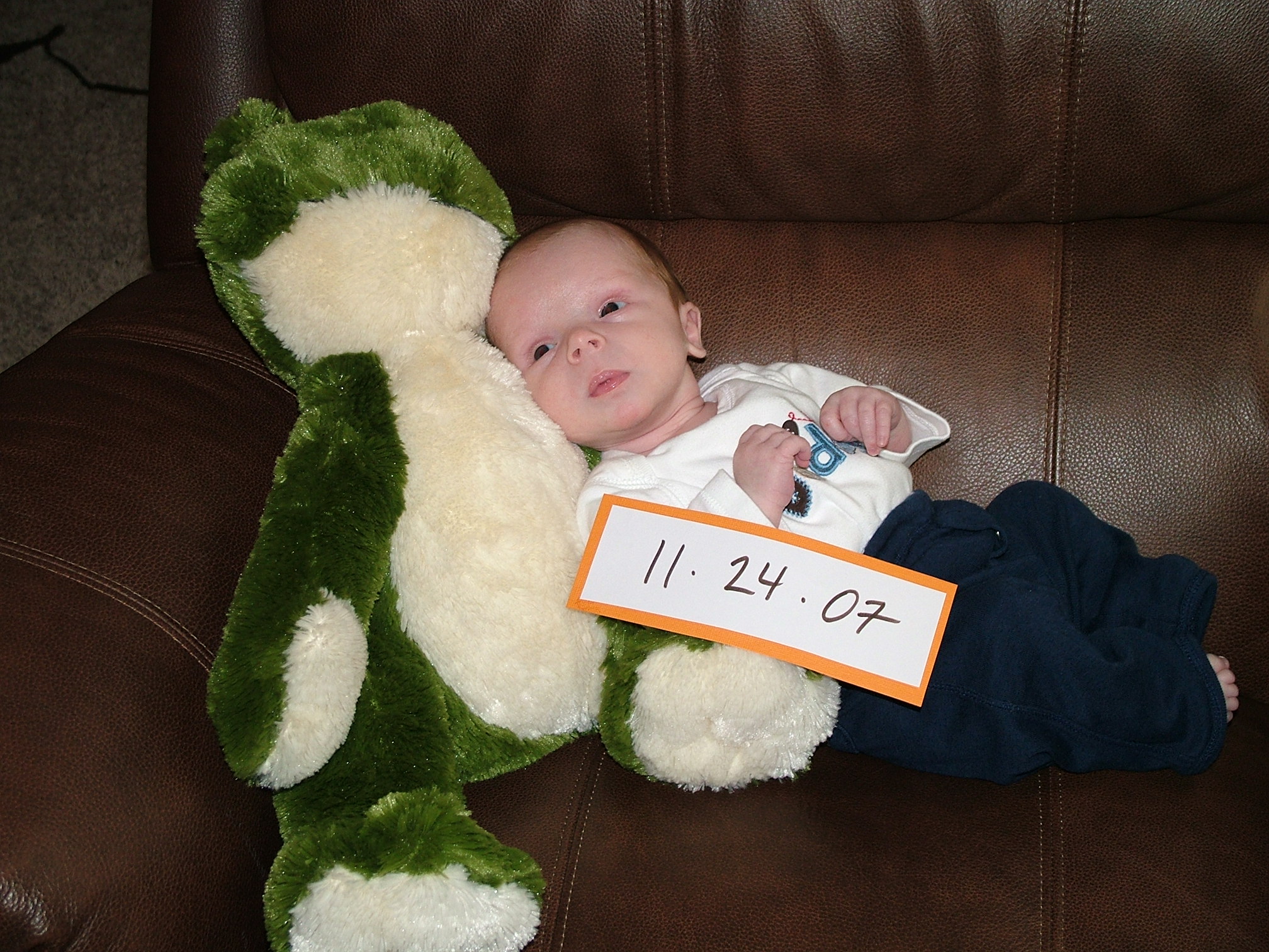 I really like this picture of David. He is three weeks old – which is hard for me to believe. I can hear him right now on the monitor. He should be going back to sleep after having just eaten, but I think he’s not too sleepy at the moment.