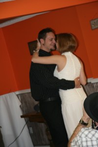 The late afternoon light was not ideal for picture taking; neither were the orange walls. (However, I have to update to say that Angie posted some great wedding pictures so my lighting/wall color excuses are blown.) This picture is blurry, but still says a lot about the moment.
