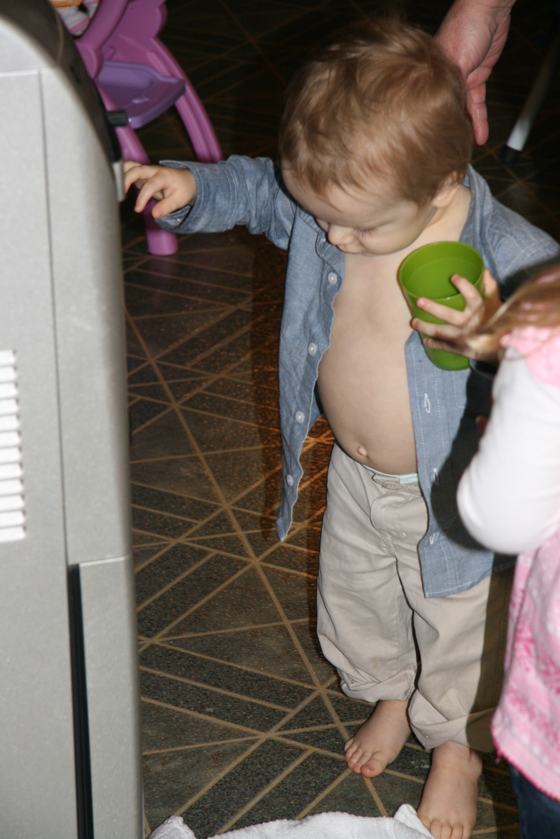After the wedding, we went to David’s parents’ house. Davey quickly got comfy and he soon discovered the water dispenser.