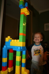 Finally, this morning, David and Davey were building. I was trying to take pictures of them, and Davey kept saying, “Mommy you startled me!” everytime the flash went off.