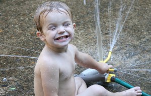 Yesterday, Davey discovered the sprinklers. He played and played and played in our driveway. He absolutely loved them. Here are some pictures. (David took the pictures. We just let Davey strip down and play. So after David was done, I asked him about taking the photos, and he said he took lots of good “Elvis” shots. I didn’t know what that meant, so he explained, “from the waist up”. I just thought that was pretty funny!