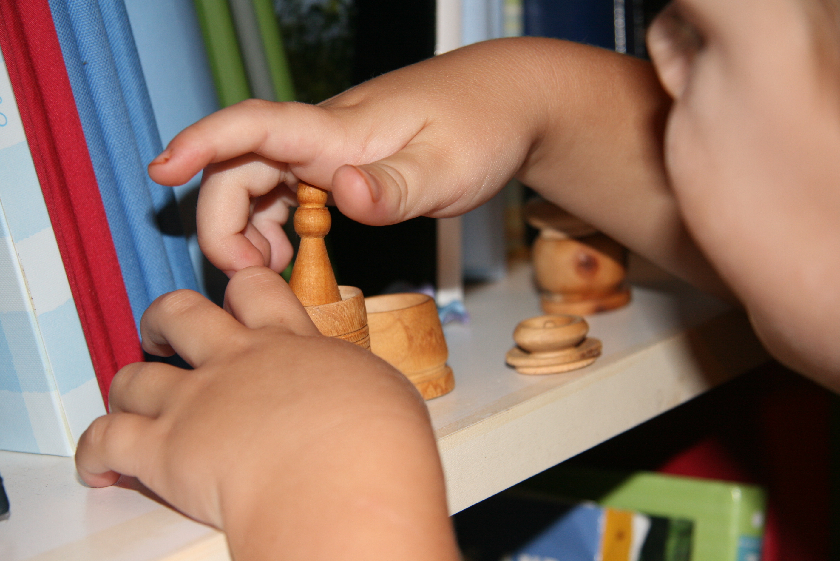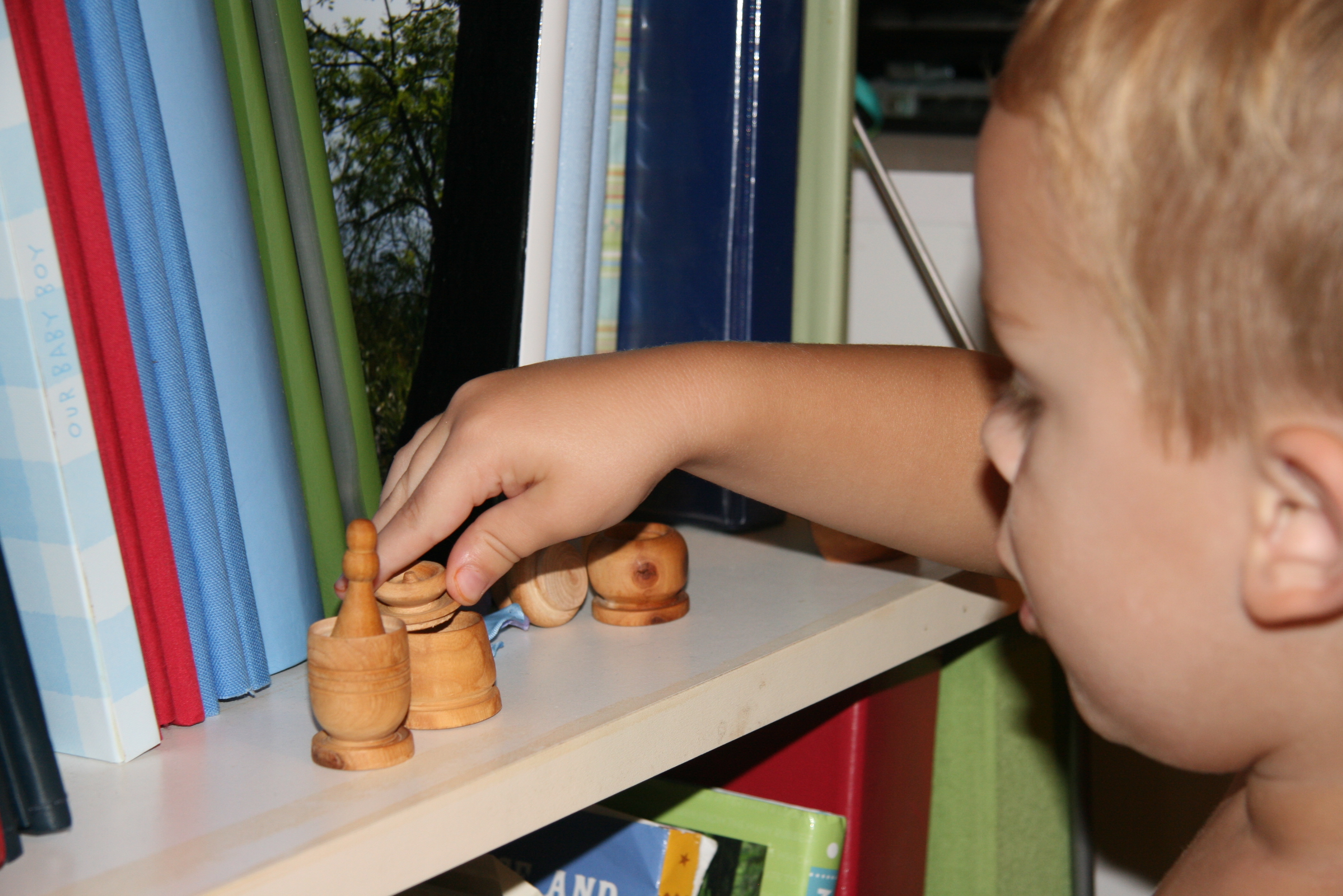 My dad made them. Davey gets them out sometimes and has fun arranging them. I love to take pictures of his little hands:
