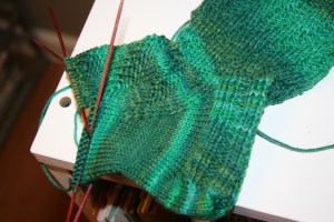 Lastly, Rock-a-Bye Baby sock #1 is coming right along. I am finished with the heel and gusset and am making my way down the foot. I’d like to finish it today if I can.