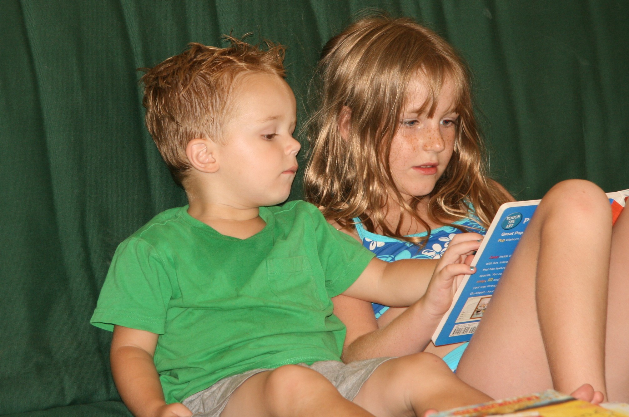 Reading books (and no we didn’t get gel happy with Davey’s hair. Sweaty and hot kid cooling down here):