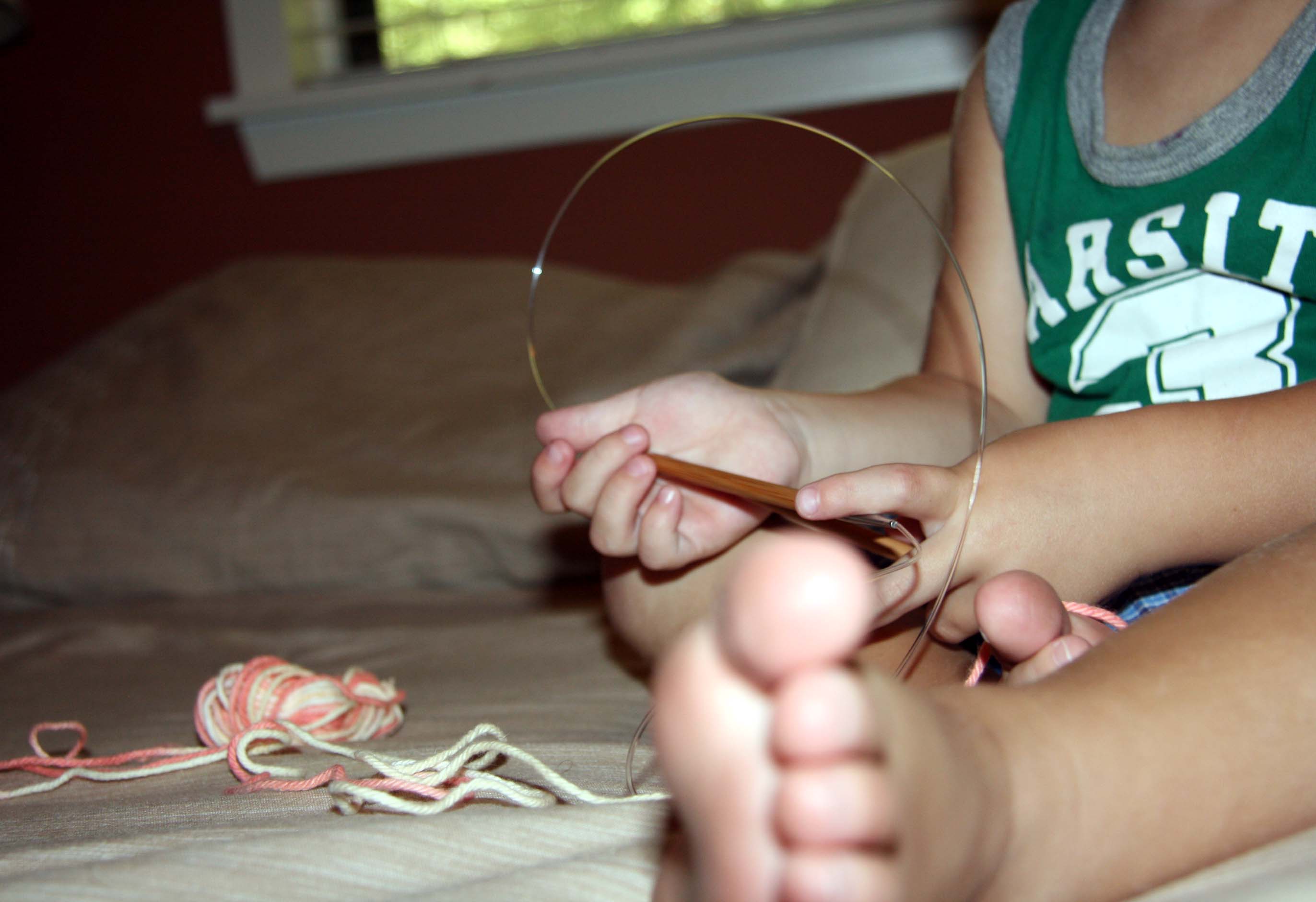 As I was organizing, and I’m not done yet, Davey decided he wanted to knit. He’s been talking about knitting a lot lately.