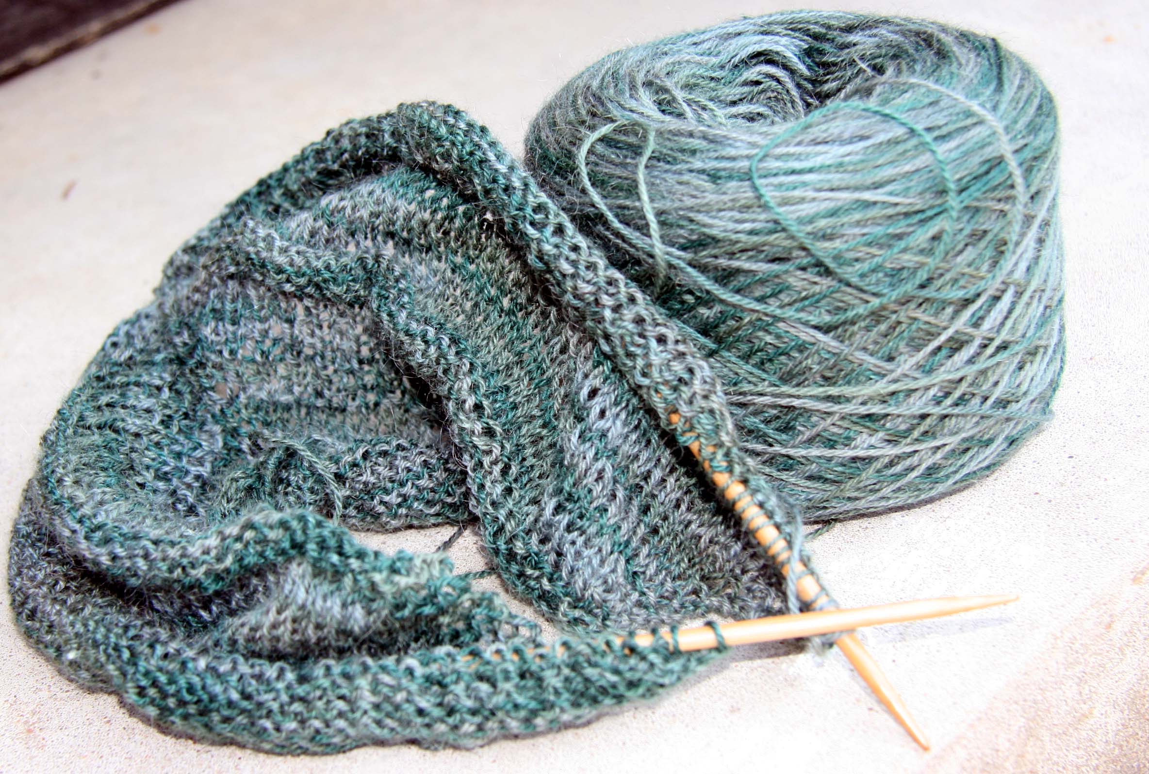 I started a small shawl/scarf this weekend. Something to work on until I get my zeroes. And, I did buy new yarn for it. It’s a light fingering merino/mohair nylon blend. I should have enough though for 2 projects.