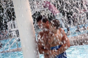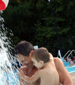 She held her nose when she went under the water, so he followed her around holding his nose, but he didn’t go under water. She explained to him that it was easy to go under. “You just close your eyes, close your mouth, hold your nose, and kick your feet.” (He still didn’t attempt it. I am going to feel much happier once we get him some lessons next summer.)