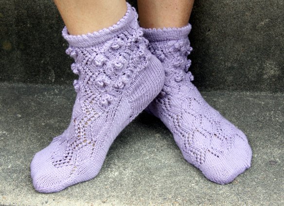 I love the shorter length of this sock. I can see a whole bunch of hand-knit summery cotton socks in my future.