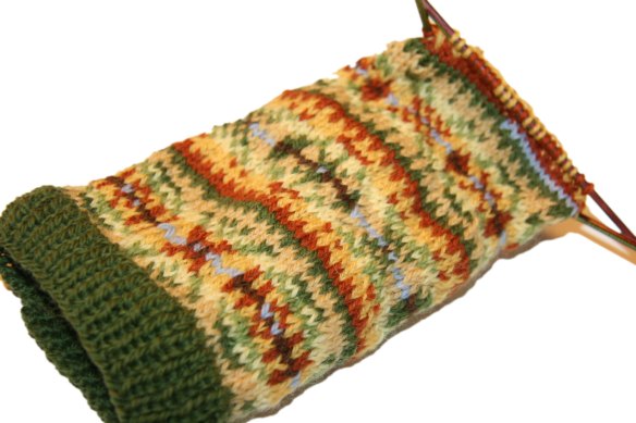 I hope to maybe have a little knitting time this afternoon. I am eager to get going on the foot of the sock. I finished the leg last night. I set up the heel to do later, and now it’s time for the foot. There is a row of blue stitches visible near the needles. I will pull those out later and pick up the stitches to knit the heel. (In theory that is.)