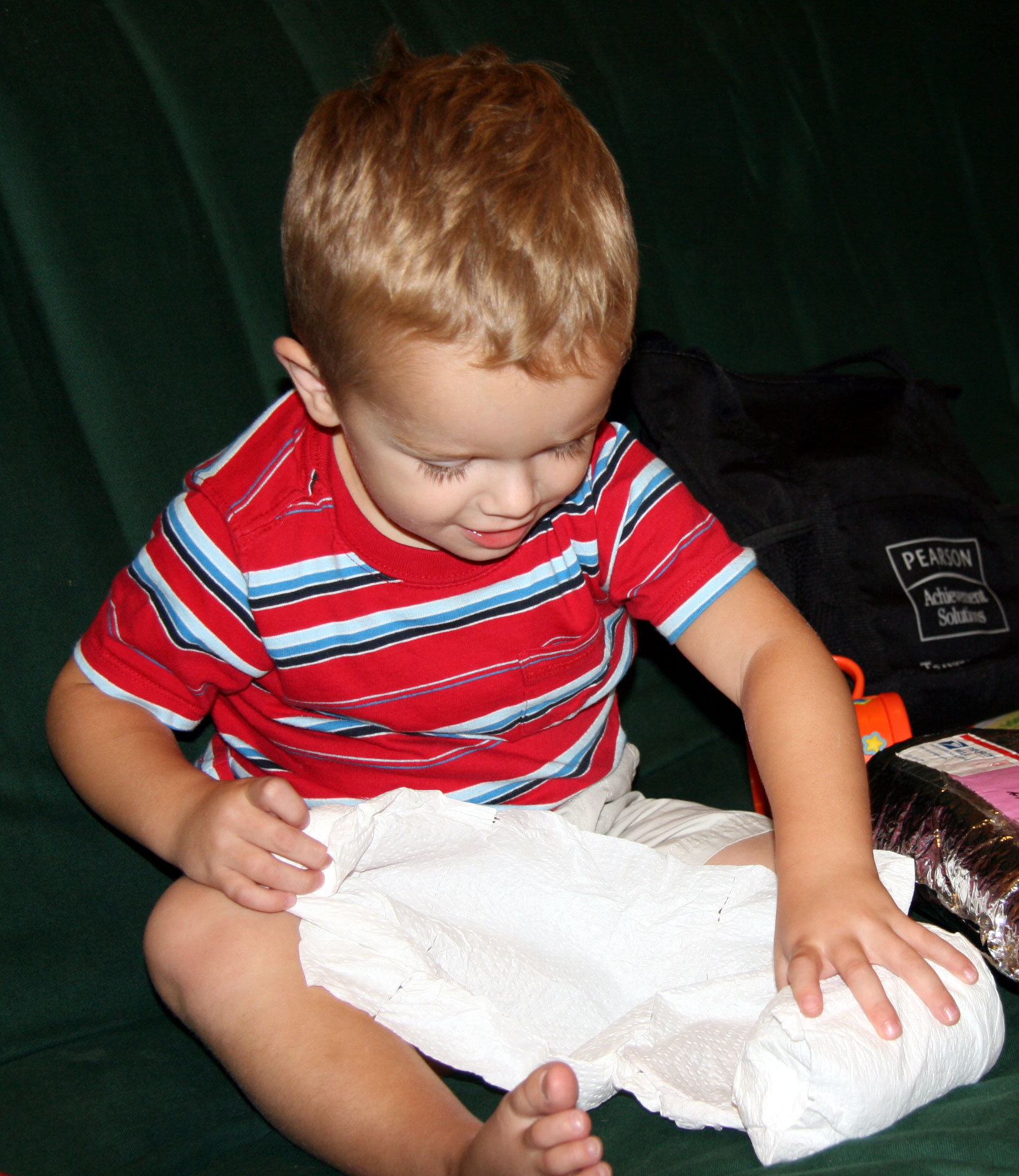 Michael and Holly sent us a package today. Davey had so much fun opening this up: