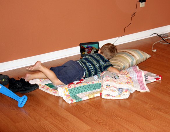 So even though moving has been a little tough on Davey, he’s stayed happy and smiling most of the time.  Here he was watching some Dora before we left Hays, Kansas.