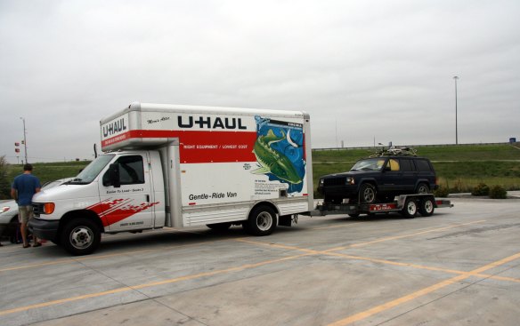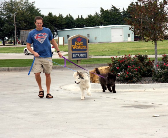 Our dogs have moved with us several times.  I have pictures like this one of when they were still puppies and we moved to Seattle.   This was in Hays also, and it was really chilly that morning.