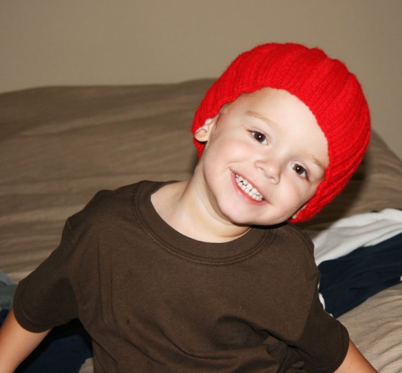 I am not knitting much. I am building up a knitting deficit. I have not gotten to sit down and just knit for several hours since I left my friends at Knit Unto Others. I am going to have to make some time for uninterrupted knitting this weekend! I did finish Davey’s hat last night. He likes it.