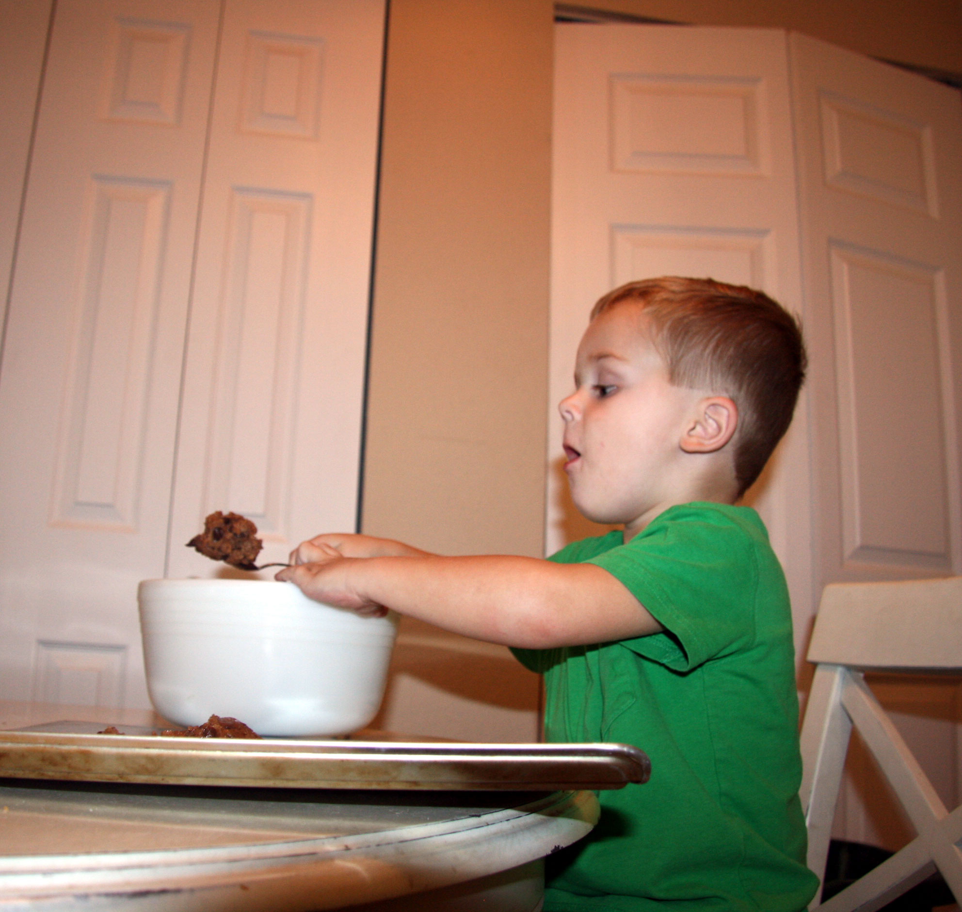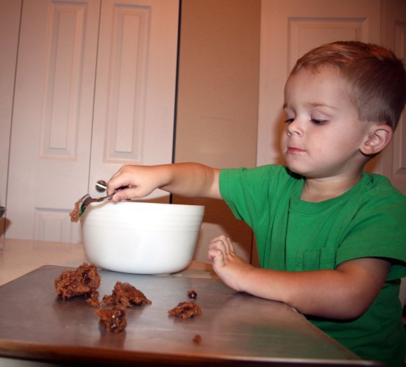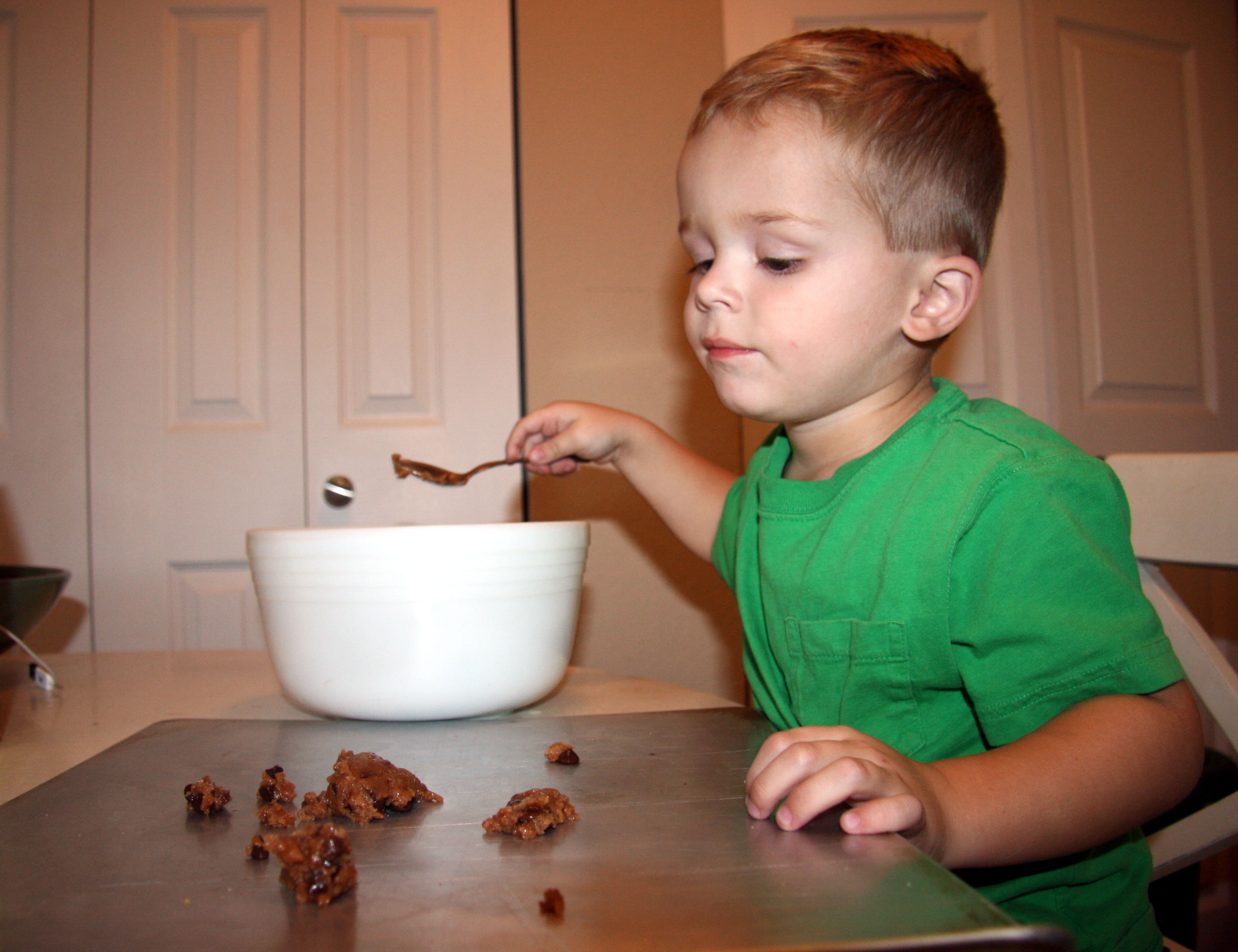 He worked hard to try to form cookies and not little cookie niblets. Total concentration here!