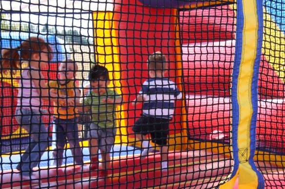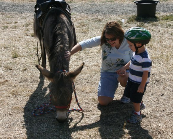 There was also an obstacle course bounce house. I am not sure how we finally lured him away from that. He loved moving through there. It must have been the promise of a donkey ride.