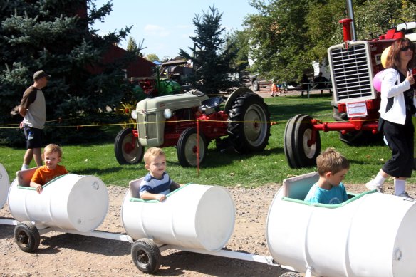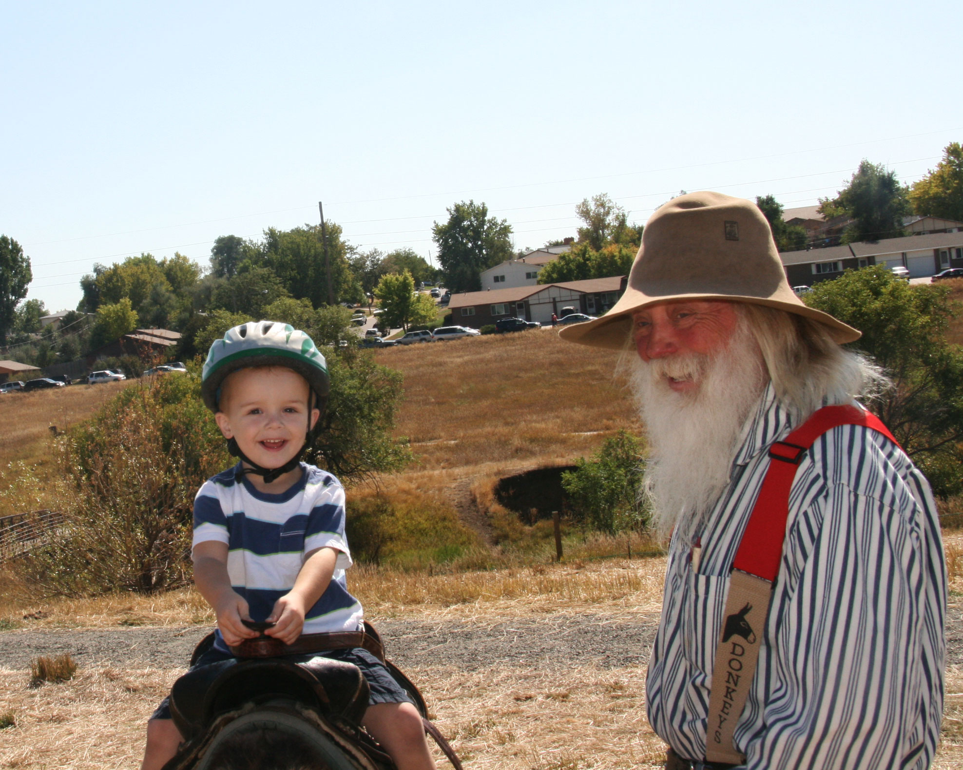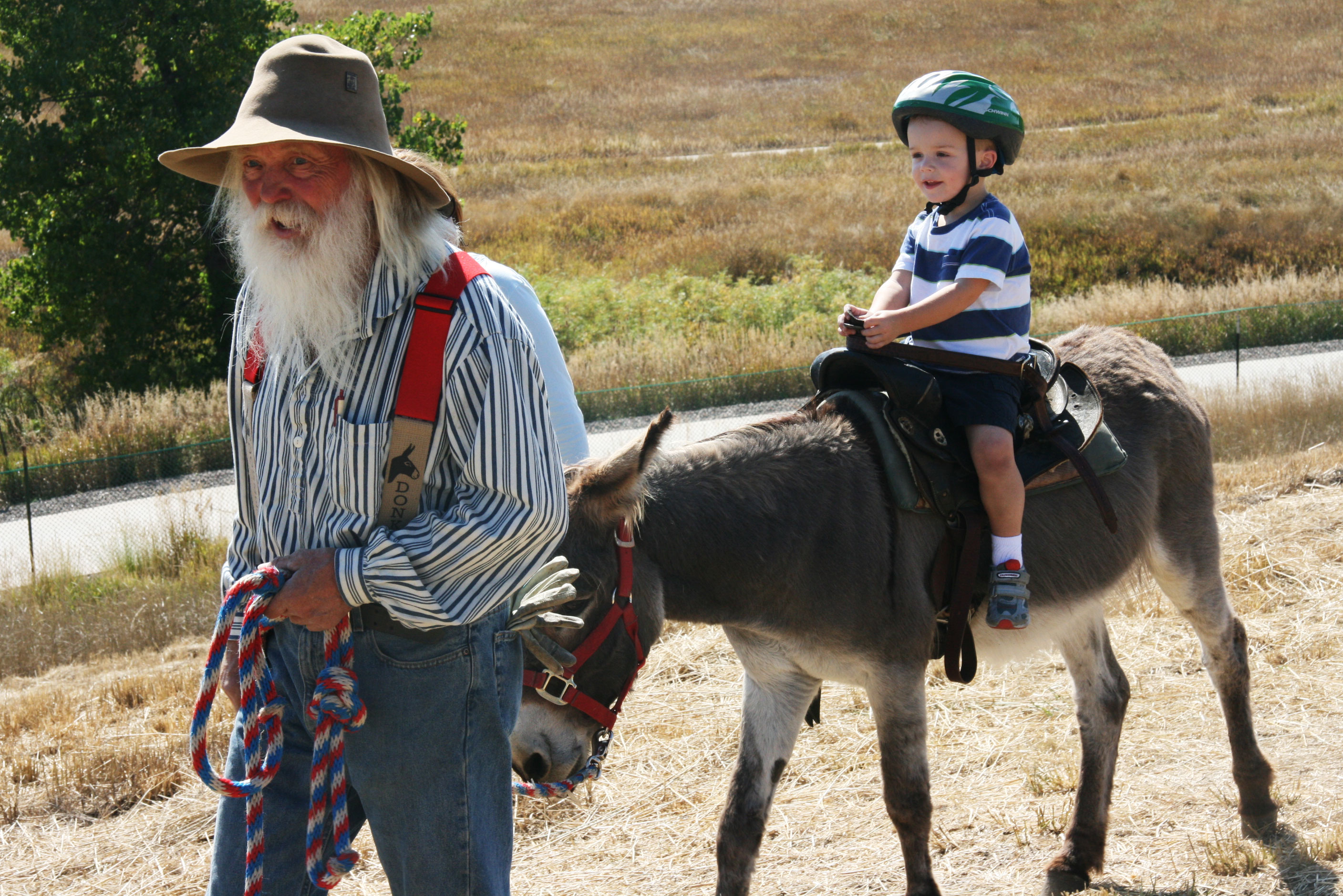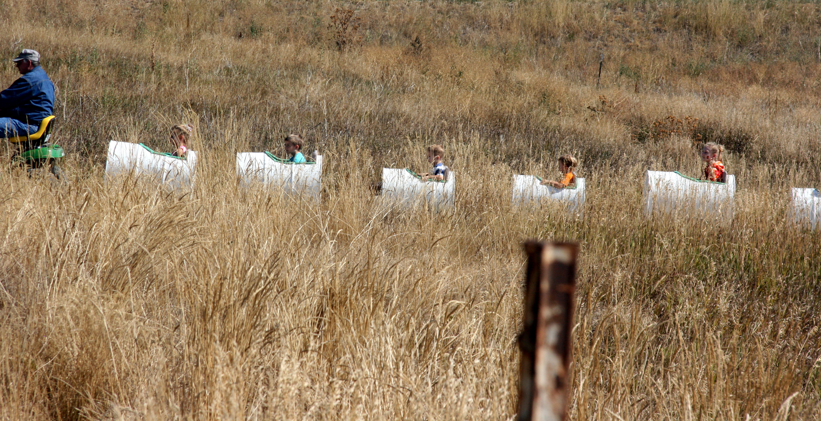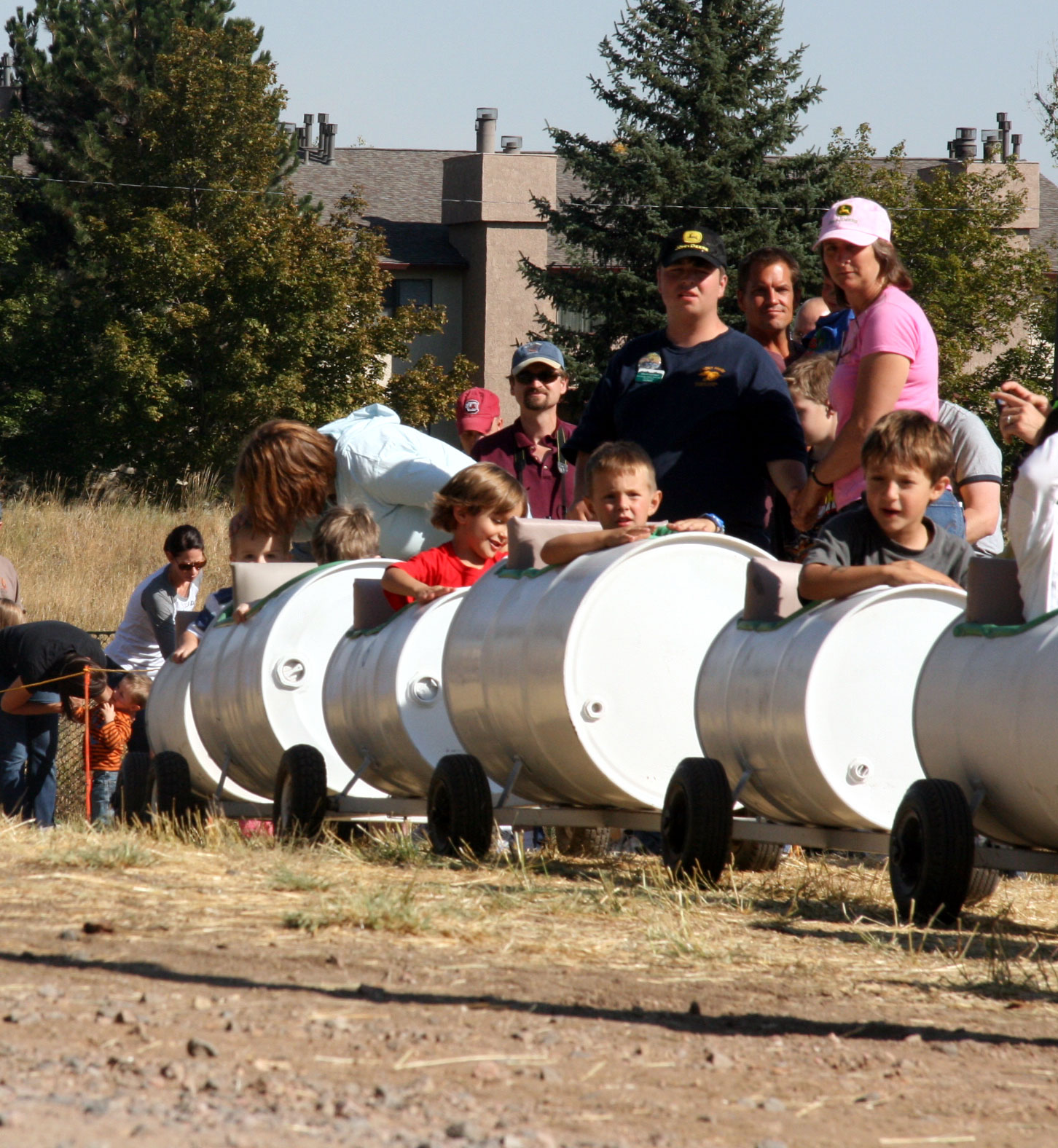 Next Davey headed out onto the prairie on a barrel train. See him in one of the middle barrels?