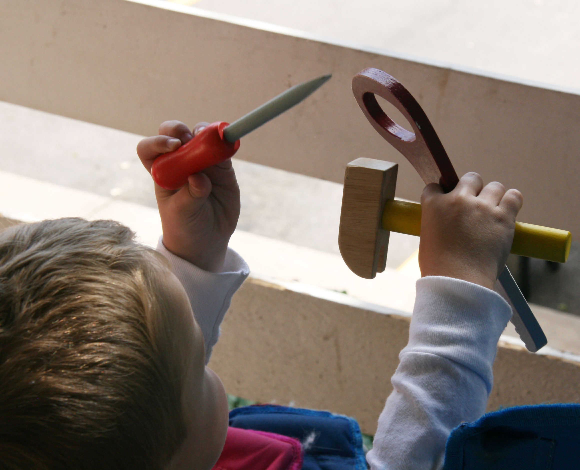 Davey was so excited to help Daddy.  He asked me to bring him his tools:
