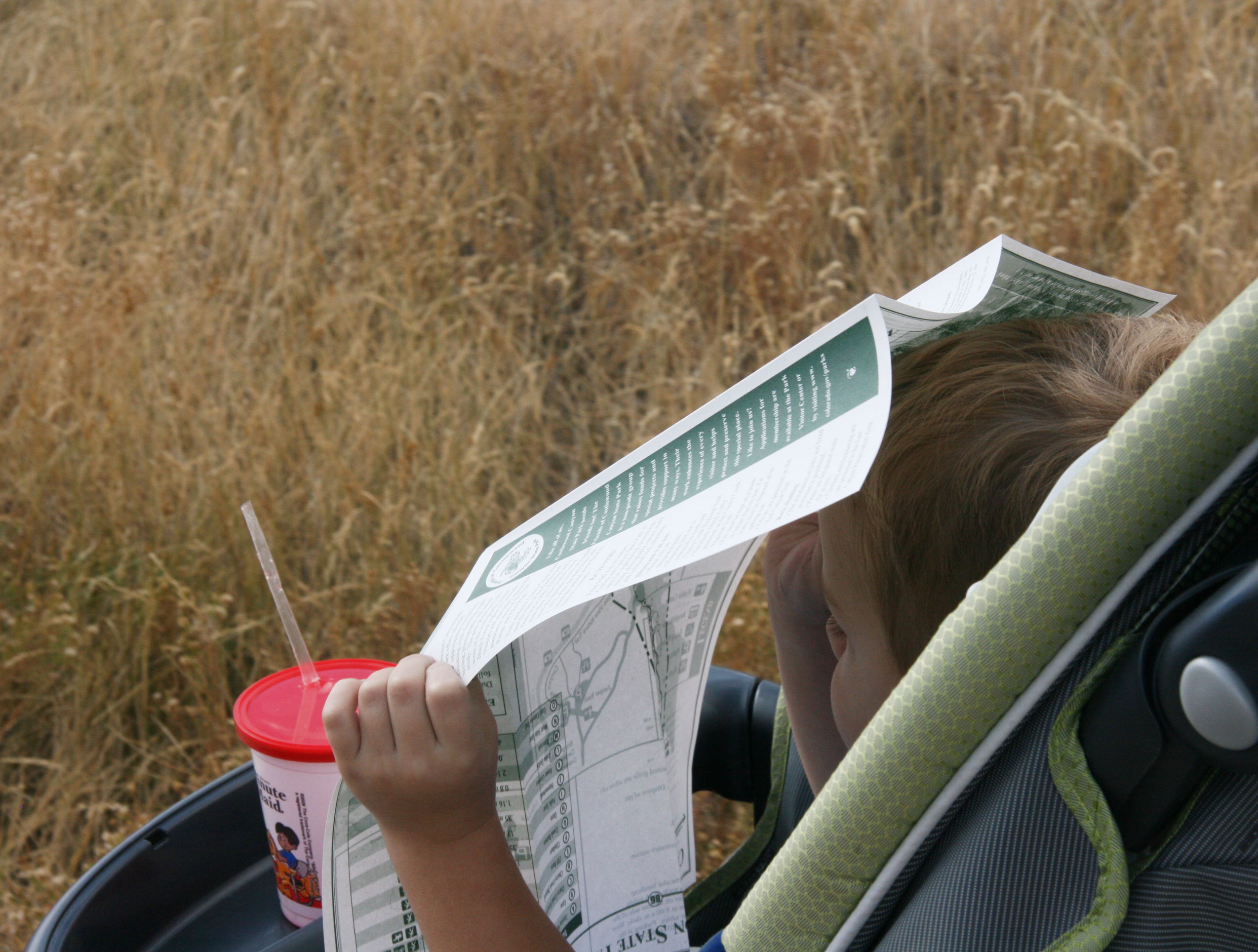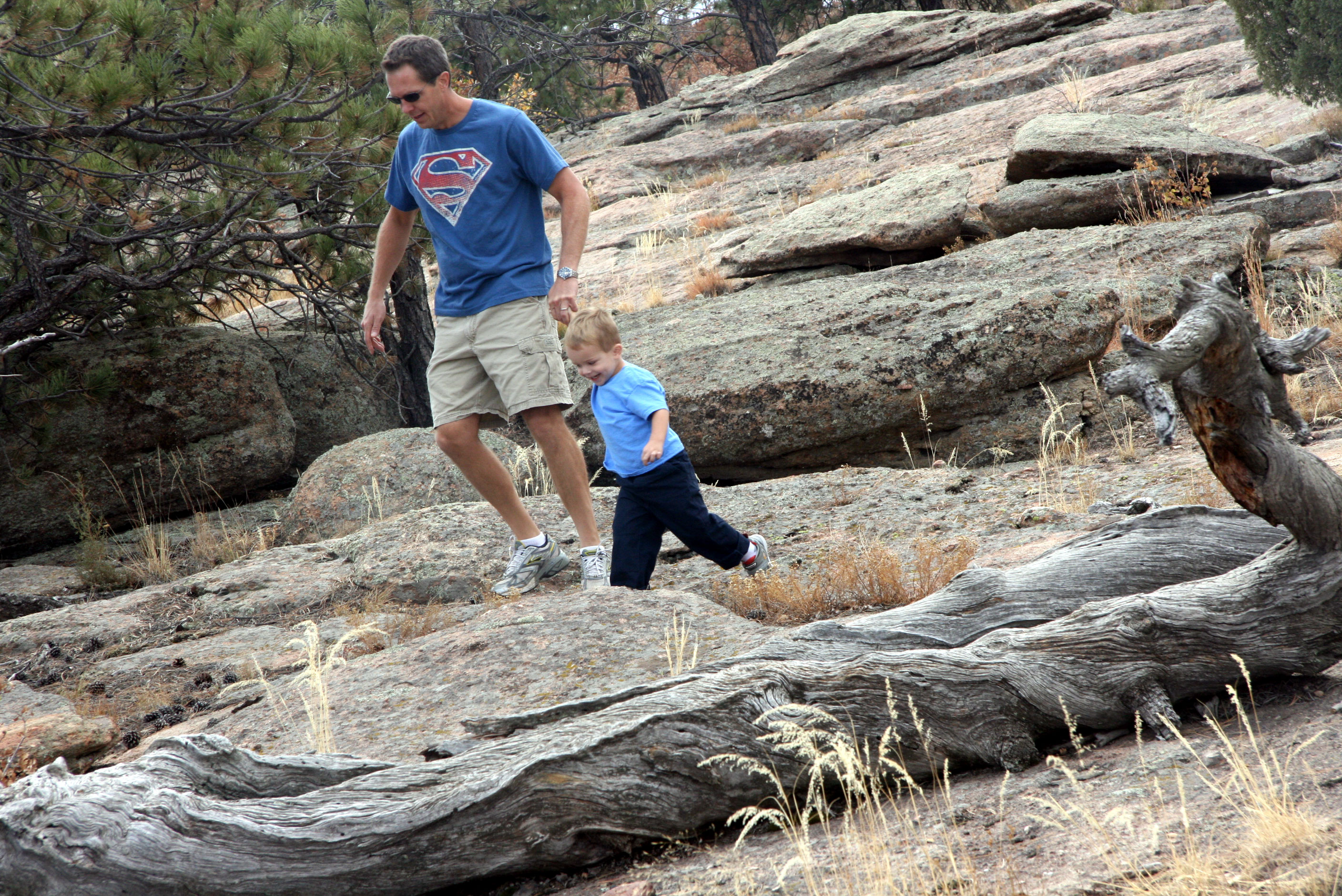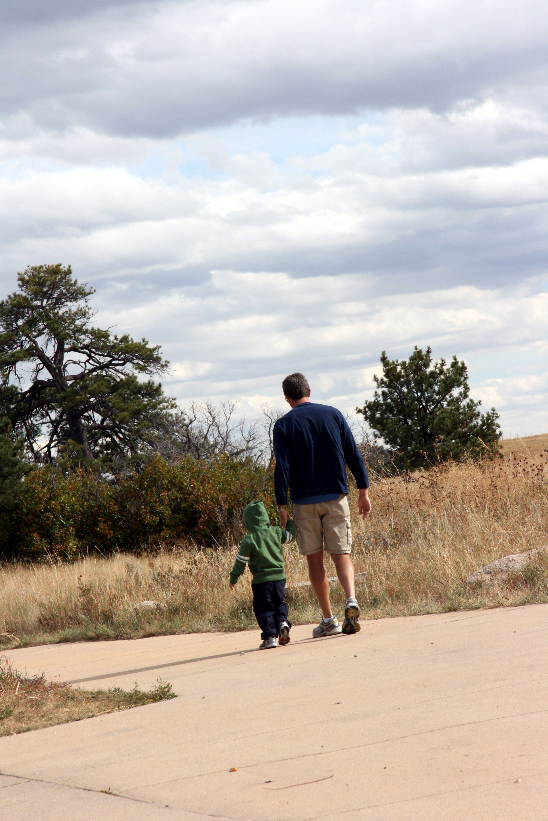Now to the Adventure. On Saturday we went to Castlewood Canyon State Park. It was beautiful. It was about an hour south of Denver and a little east, so it was not up in the mountains at all. There was a canyon and then these big vista views of the mountains. The park had some nice short trails. One was a paved trail, and we took Davey on it. He had a great time.