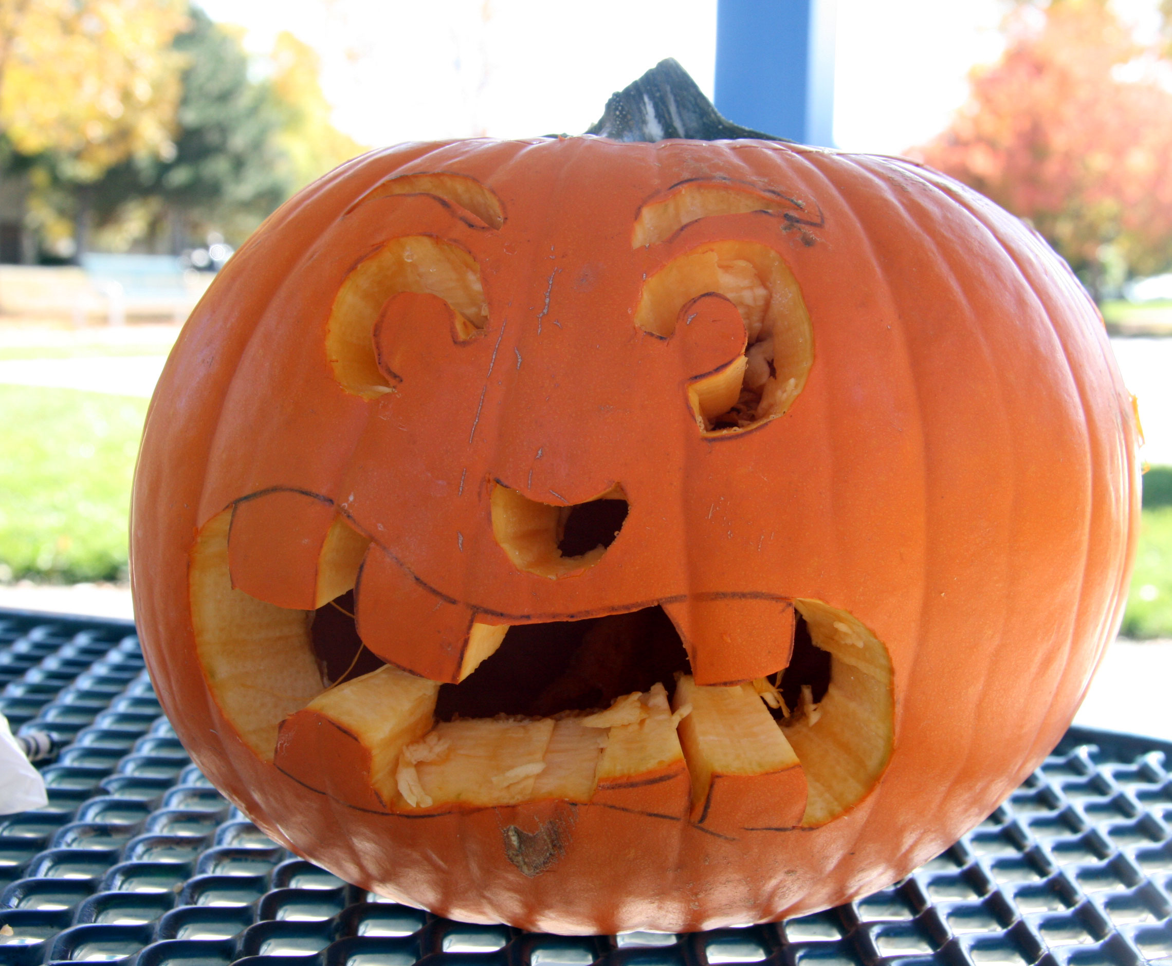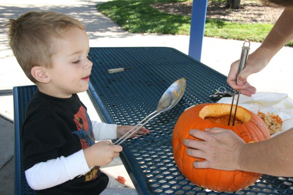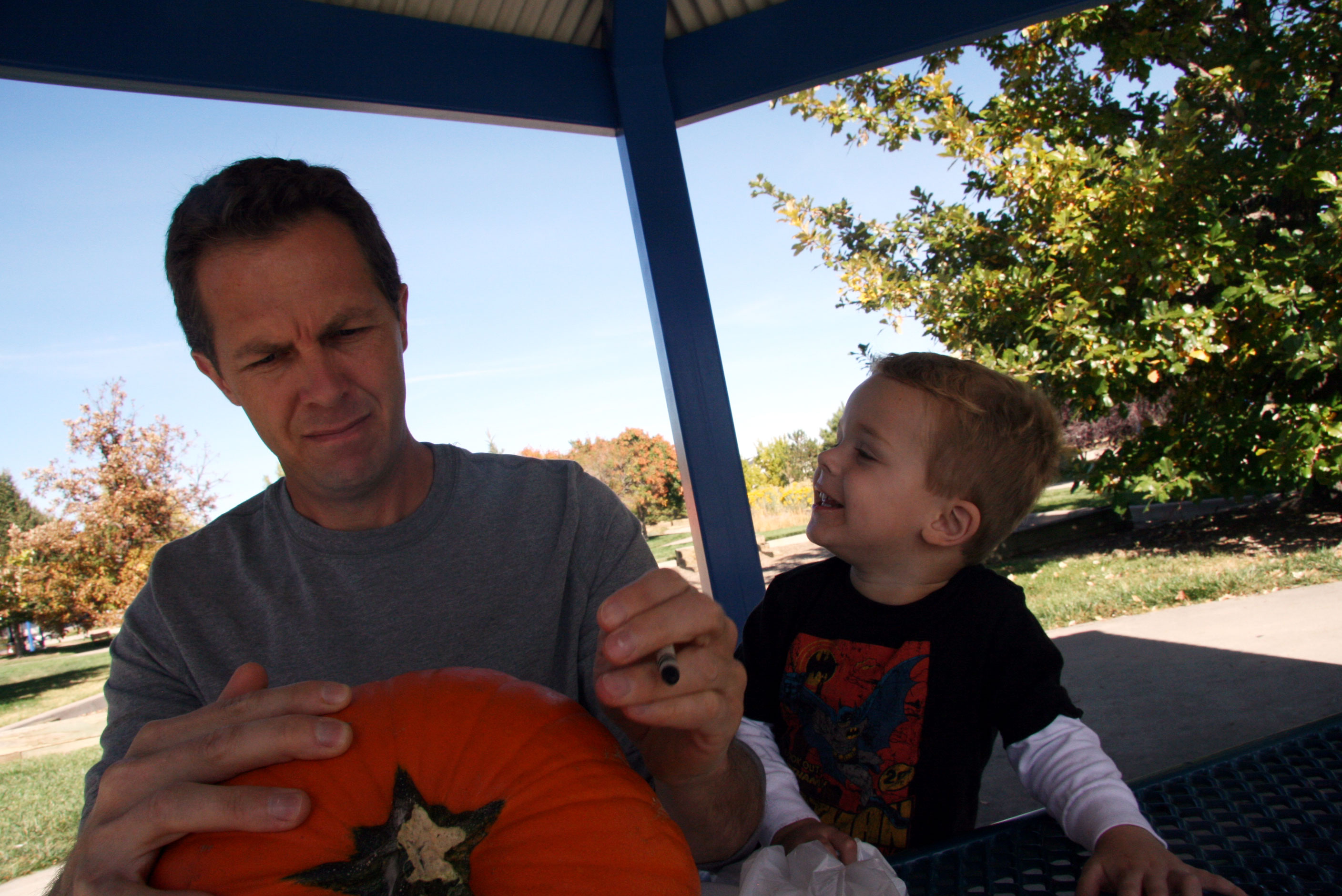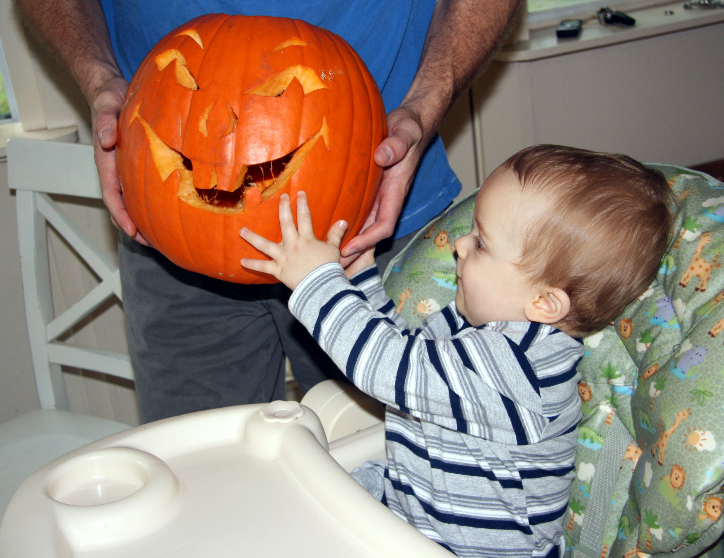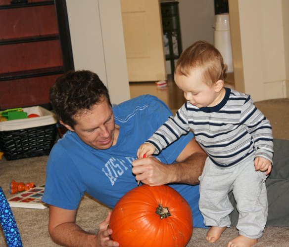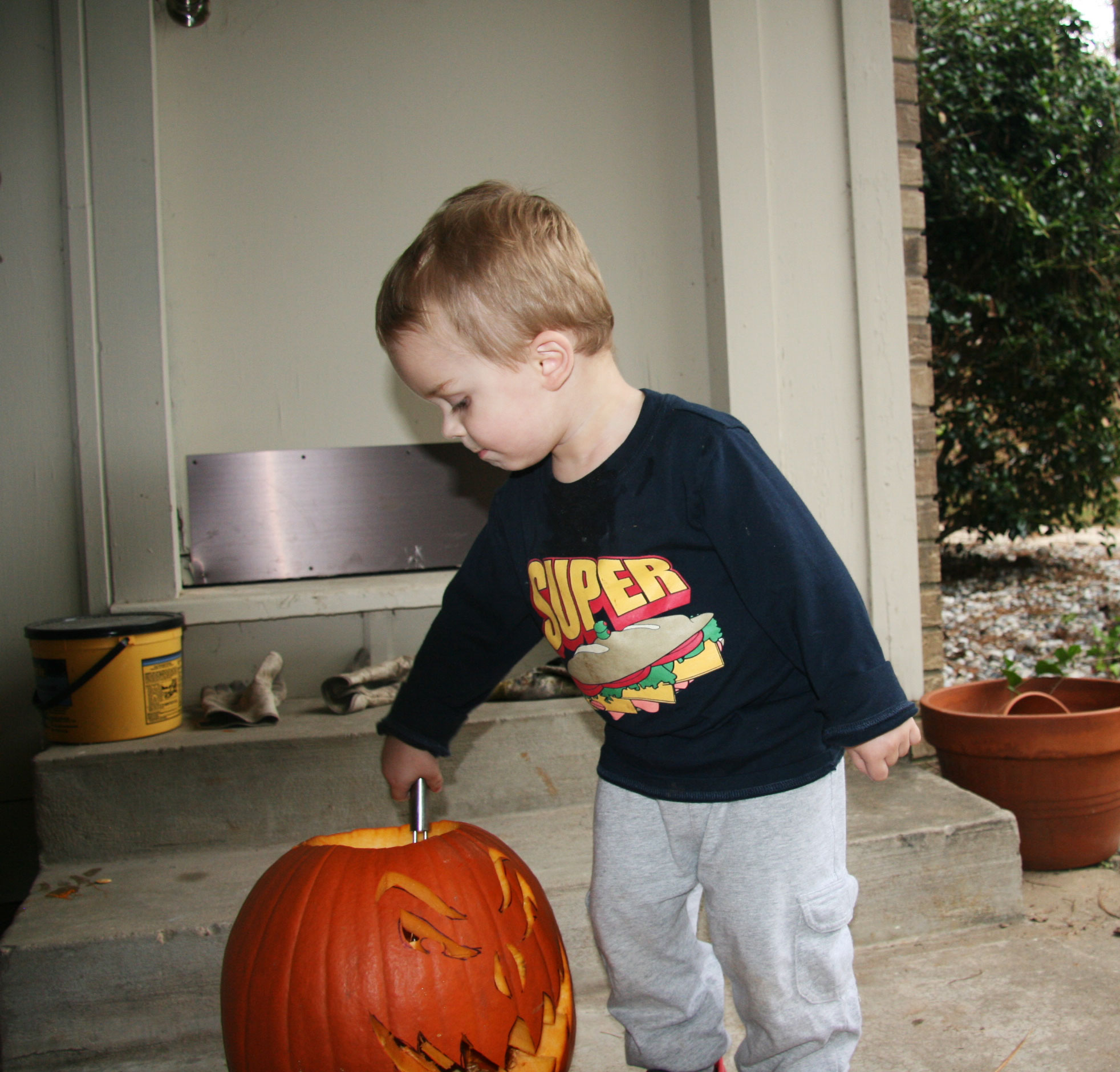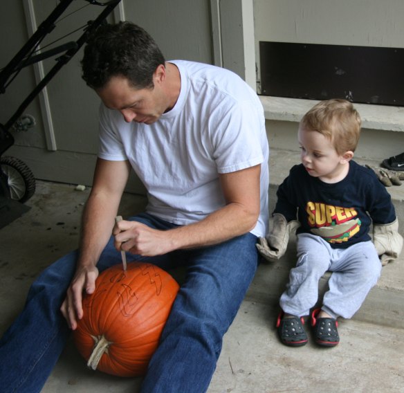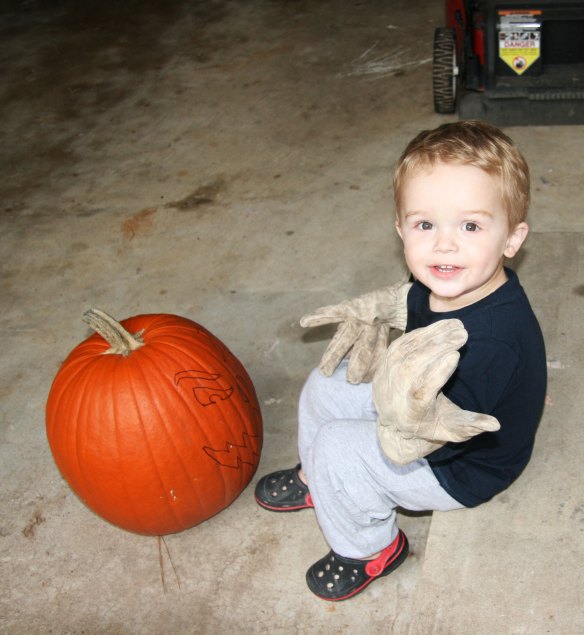 Today we carved the Halloween pumpkin.  The jack-o-lantern.  We started this tradition two years ago.  We were living out at Mama Pearl’s at the time.  That was a great fall living out there.    Davey had not been walking more than a month here.