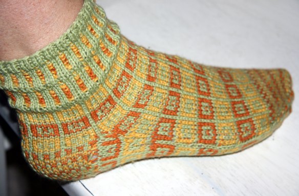 It’s an interesting sock, and it was fun to knit. It’s also very comfortable. I love cotton. It’s not my favorite sock though, but they can’t possibly all be my favorite. Once again though, I am learning a lot from knitting them.