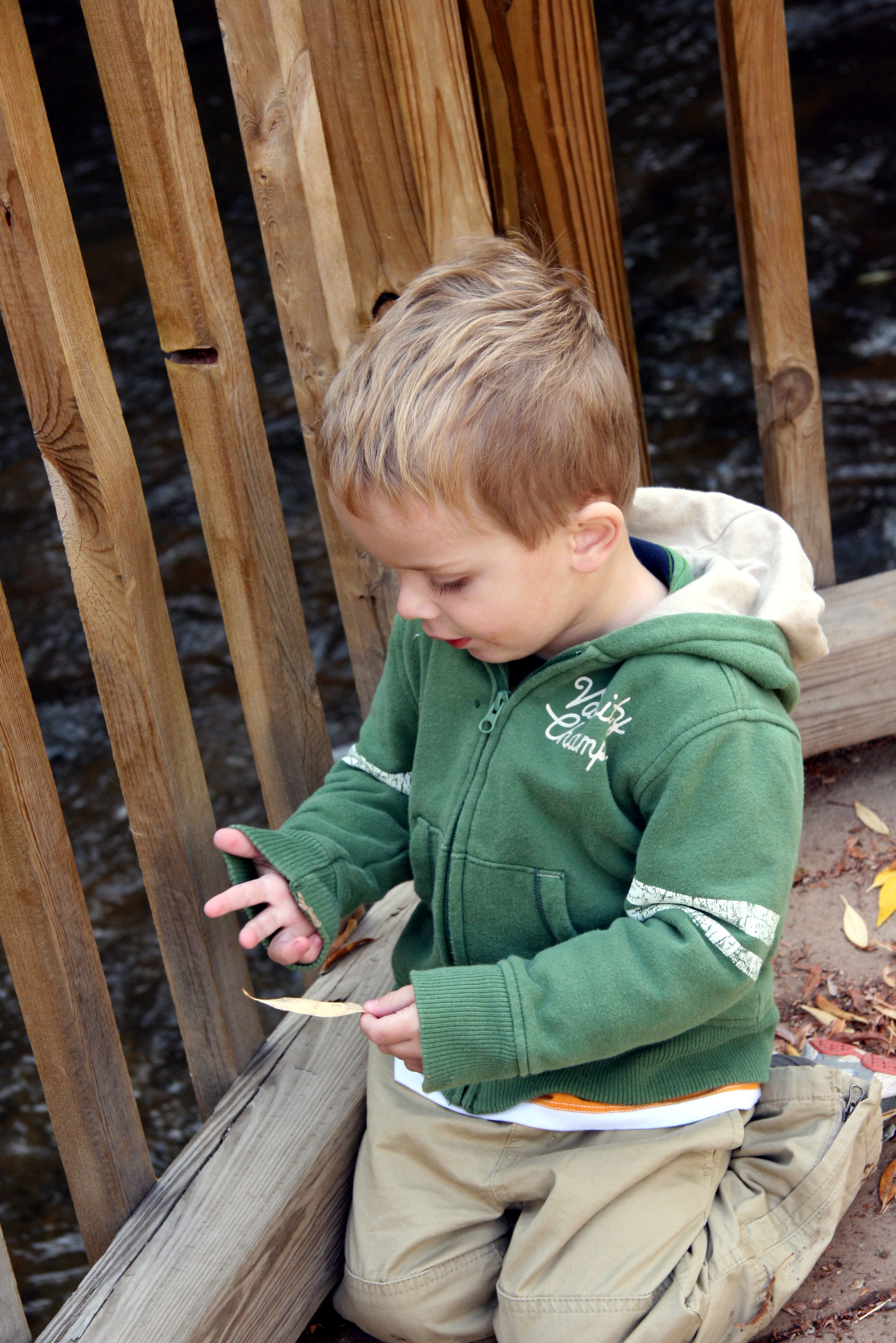 Davey gathered leaves. Actually they were small boats that he wanted to put into the stream.