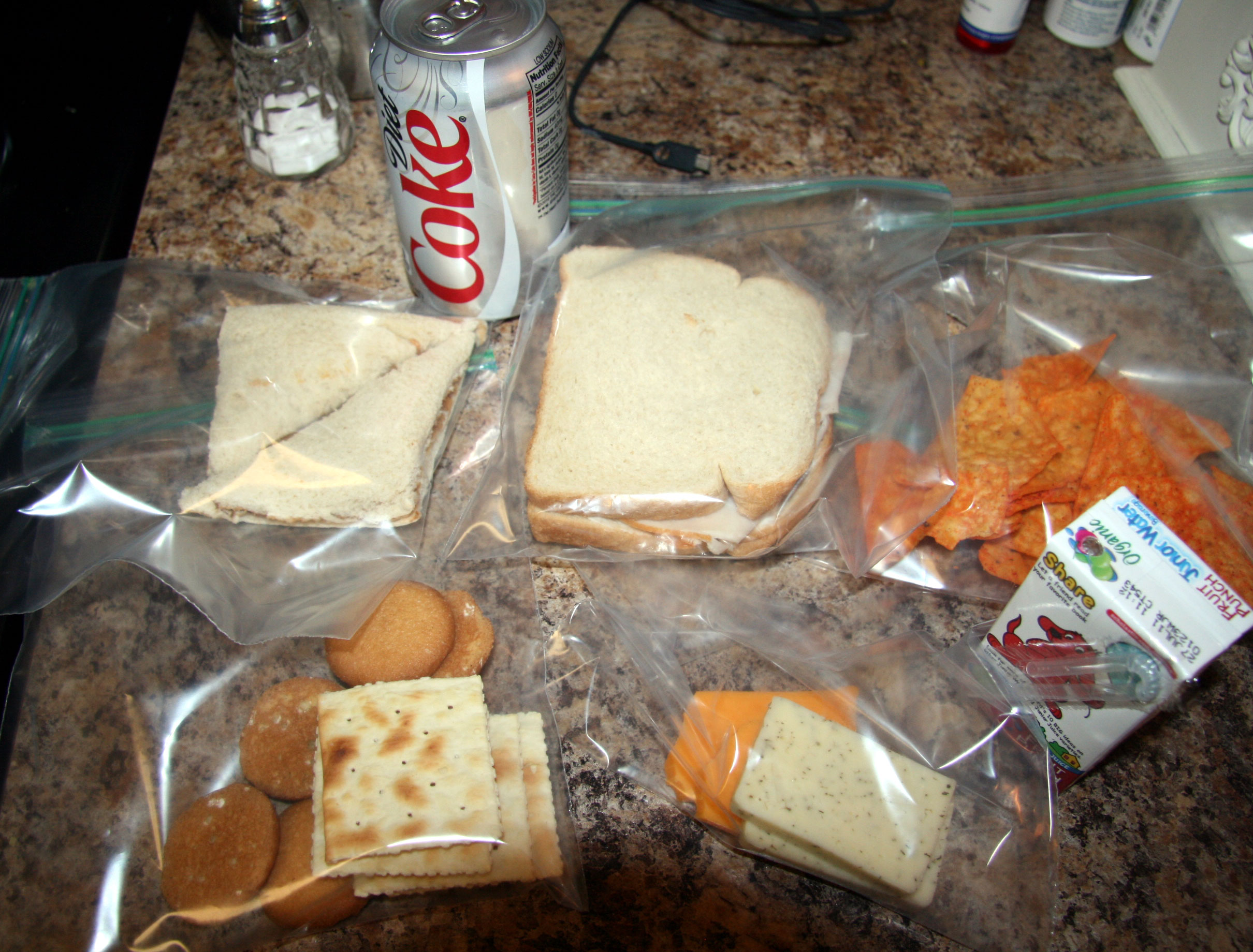 David packed a picnic lunch. Here’s a picture. Guess whose sandwich is whose? Looks pretty good! Sandwiches, chips, various cheeses (ok two kinds), crackers, nilla wafers – quite a spread for the fishermen.
