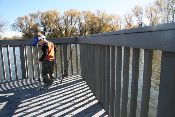 It was a little cool and windy at the lake, but they gave the fishing a try. Remember, what fish could resist the prospect of hot dogs?