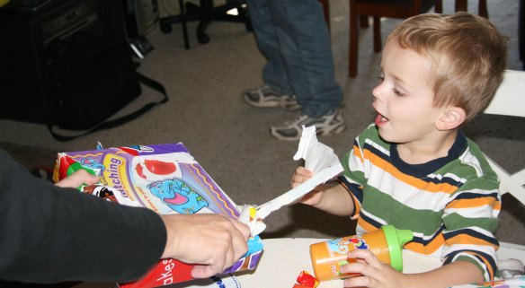 He enjoyed opening presents. As the paper would come off, he’d be taking this big gasps of air, “WHAT?? WHAT?? WHAT?? WHAT IS THIS! OH OH! I ALWAYS WANTED THIS! Or some variation of this, but he got so excited and sometimes squeals were involved.