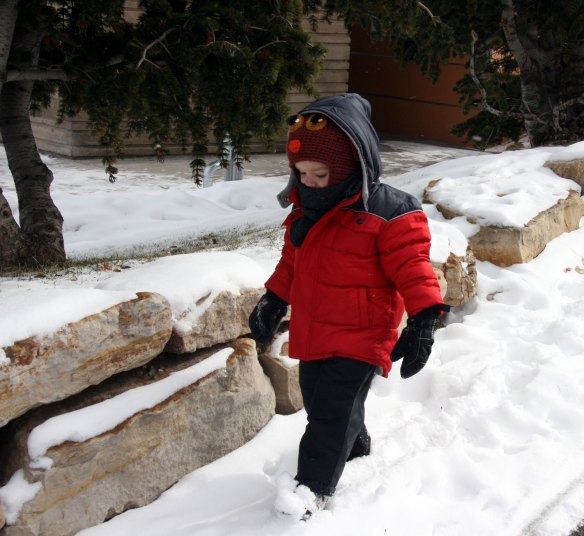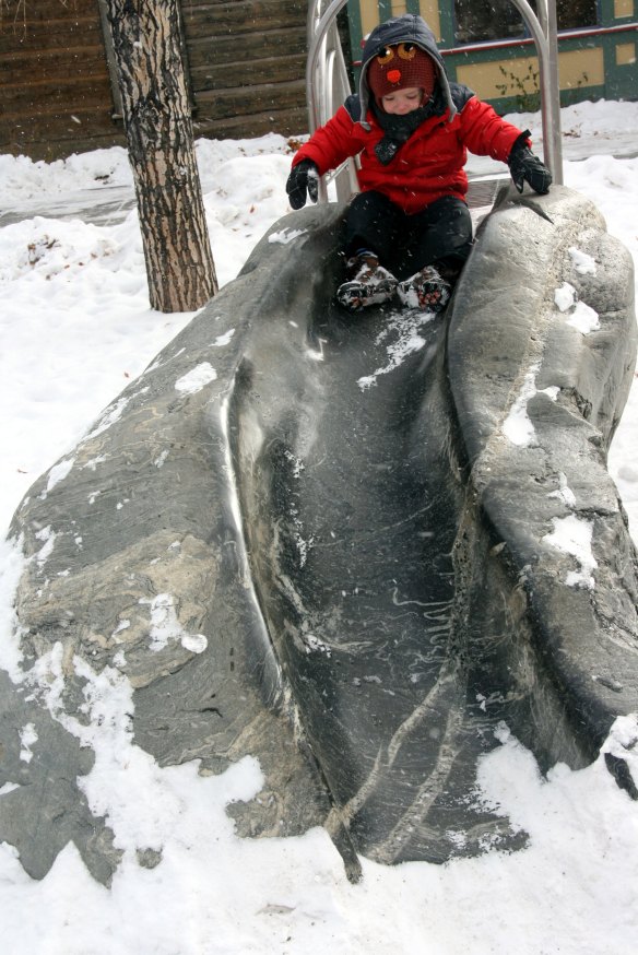 He wanted to play in the little park.  We have learned that slides seem to be extra fast in the cold!