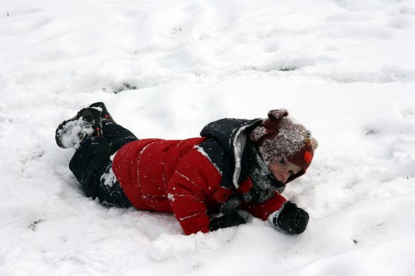 He was so happy and excited to really play in the snow for his first time, that he was hugging the snow.