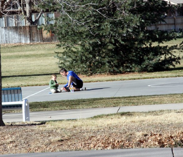 We tried to go play with the sidewalk chalk for awhile, but a massive bone-chilling cold front was blowing through.  This was not predicted that I know of.  We thought it was going to be calm and 55 this afternoon.   By 11, when the dogs were on walk #2 for the day, (they are old and need to go out 4-6 times a day) the wind was blasting and it was icy cold.