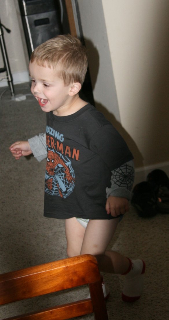 The boy who wears no pants (for maximum ease of potty training) was just as animated tonight!