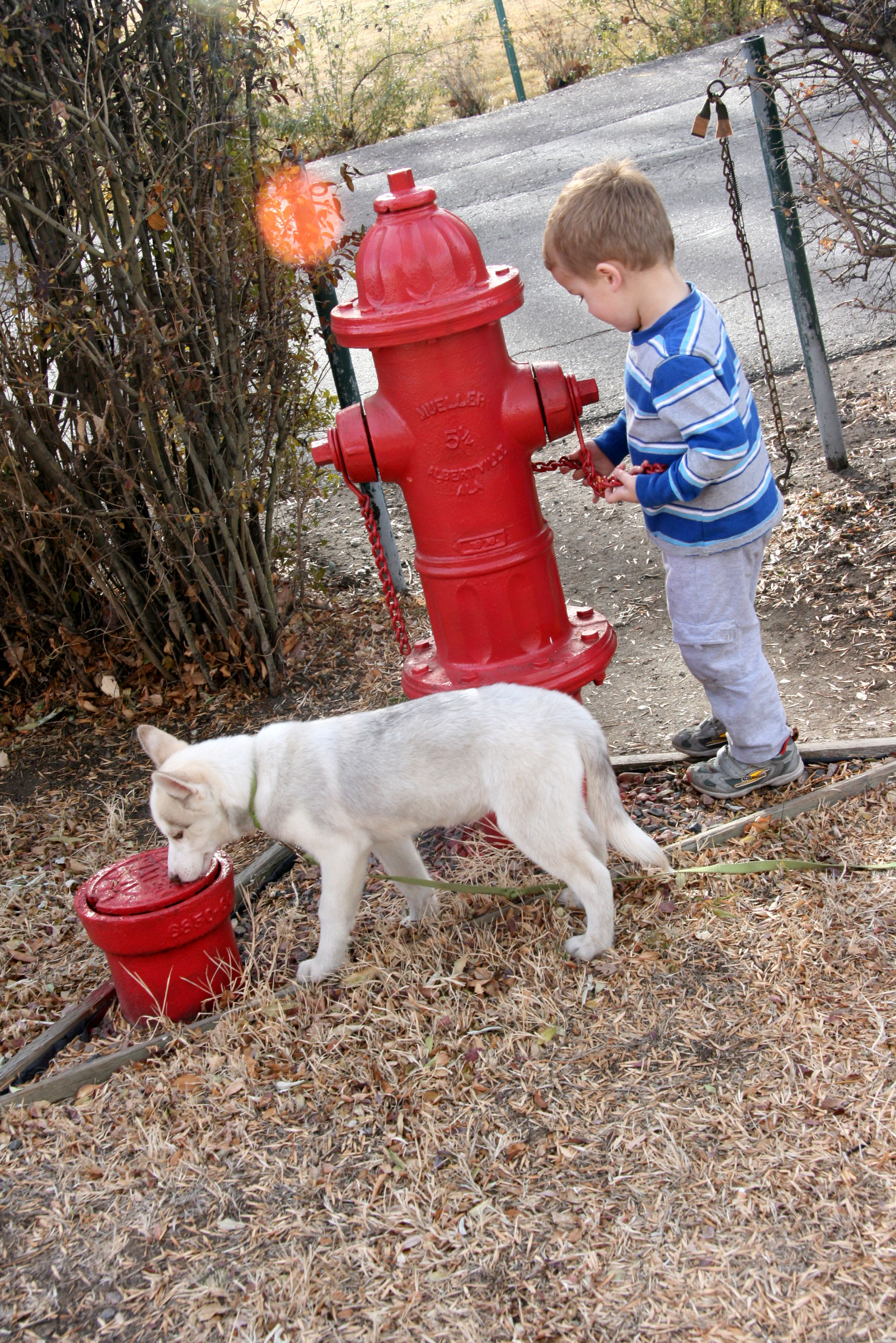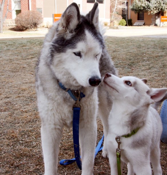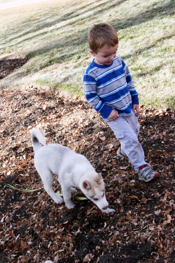 Today Davey and I went over to school to meet one of my students who has a 13 week old Siberian Husky. (Davey calls the school that we teach at “Rocky Mountain High”.) We took Timber along too. We wanted to get him some more exercise, as Koko can’t go for very long at all anymore.