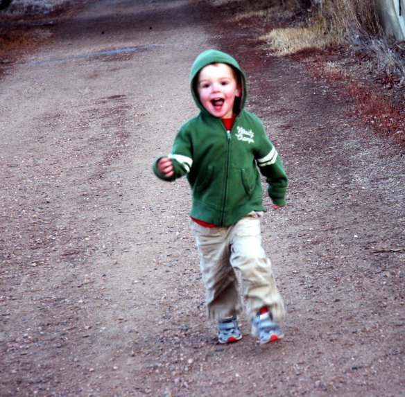 Then he ran back to me all the while yelling, “Mommy! Can you Hear me?” It’s hard to get this little running blur in focus!