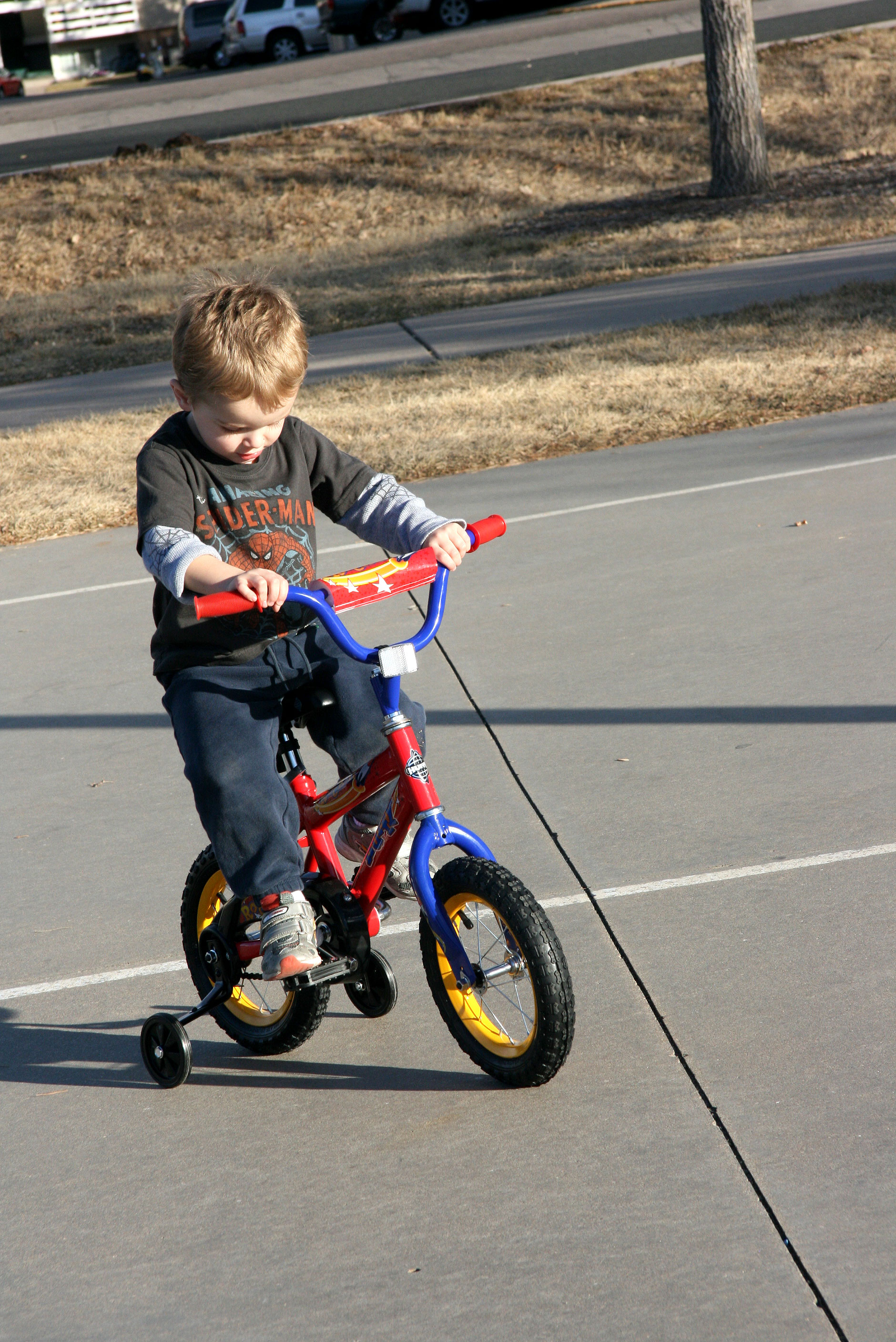 Riding a bike is not too easy at first. I’d forgotten that. Even with training wheels it takes a little getting used to. Davey hopped right on and began practicing.