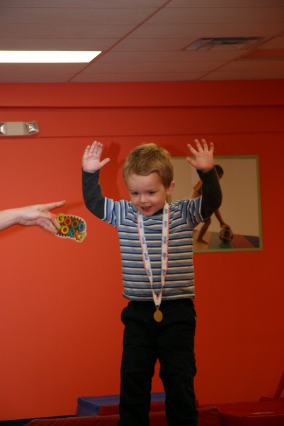 Today was Davey’s medal day at tum tum tumbling. He has not been going to tumbling for long, but he has already gained so much confidence. It’s been so good for him. Today he was whipping out the forward rolls, and he let Miss Heather take him across the balance beam and end with a forward roll!