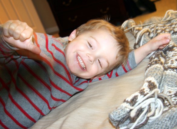 Then he wanted to point to the sweater as I took a picture. (ok this was my idea.) I learned that he points with his thumb which I found very cute.
