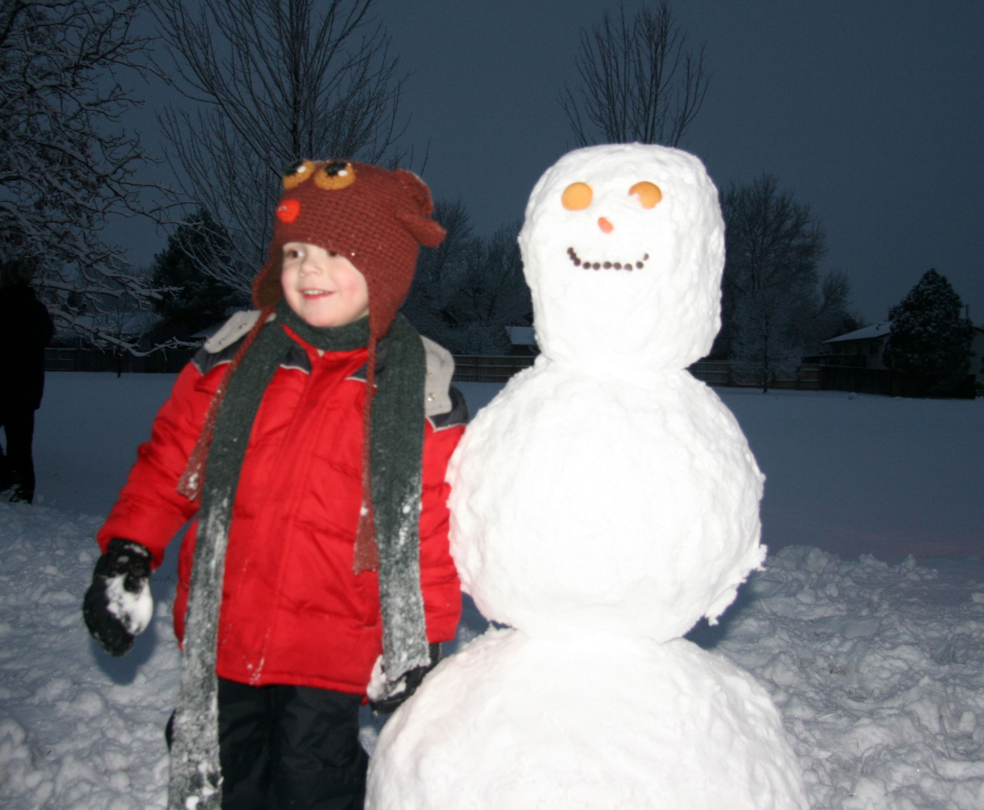 1. LOL The heck with the Canada geese —- I may have to attack the friendly snowman. Vanilla wafers AND chocolate chips! But, I wouldn’t —- he’s far too cute to disassemble.