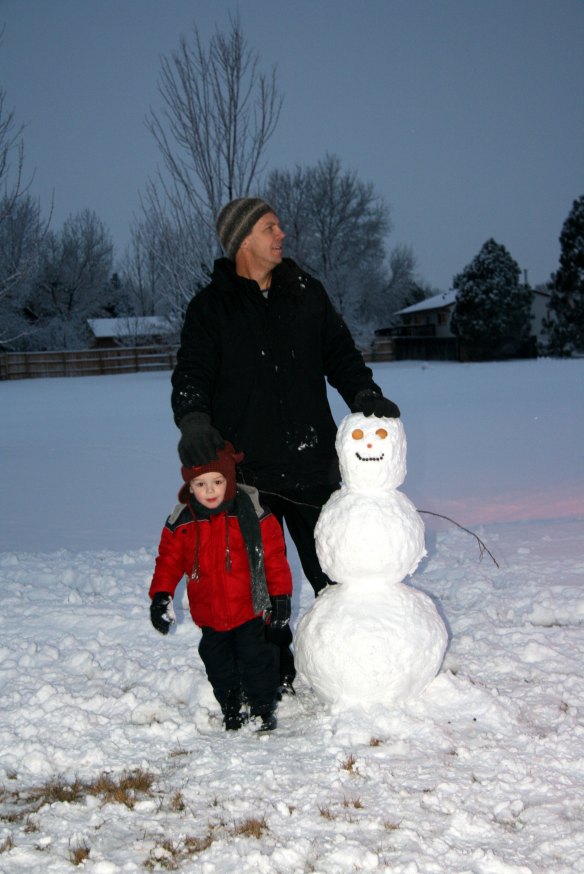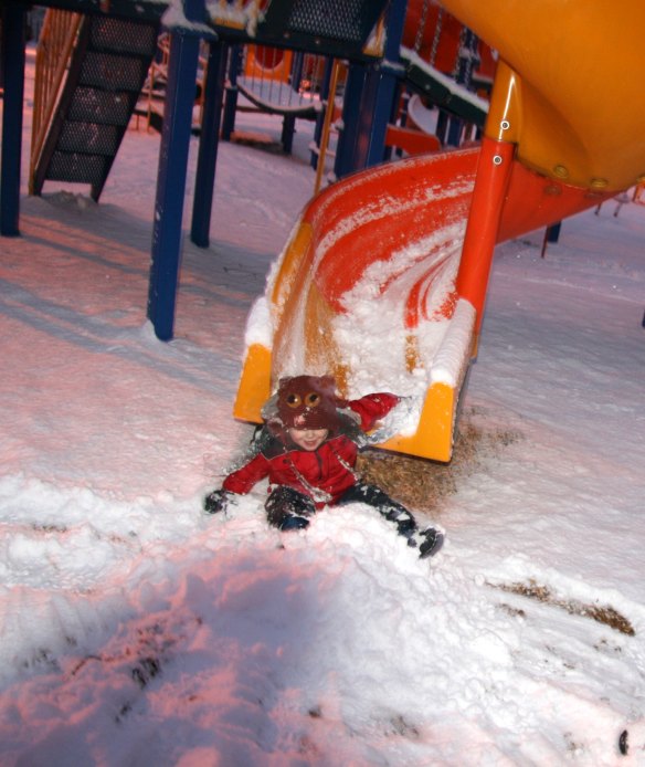 Once we finished with the snowmen, Davey had to go down the snowy slide.  He flies down that slide when it’s snowy.