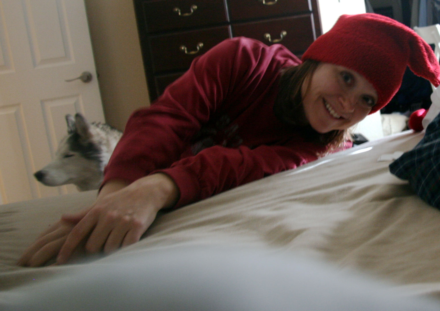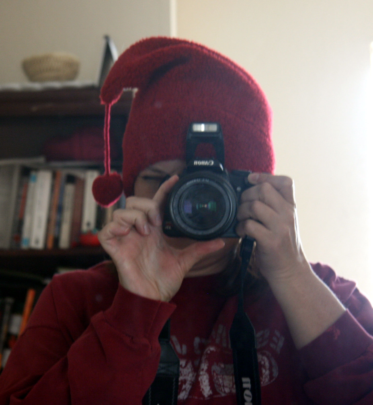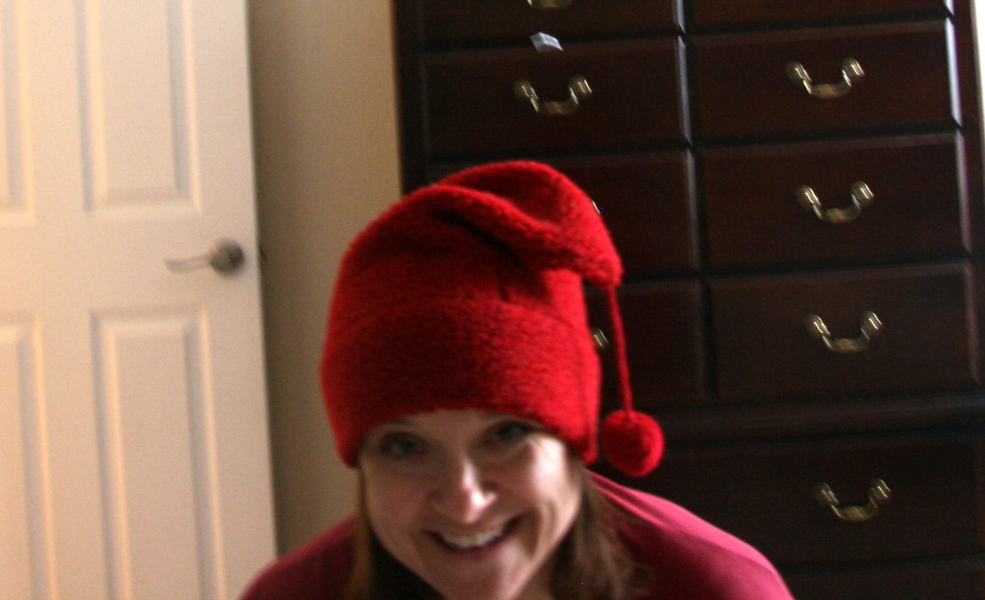I got it somewhere in Colorado or New Mexico. I can’t remember now.  I always liked it.  David calls it my elf hat.  But it’s not really very comfortable.  The seams always start to itch after awhile.  The hat is made out of some kind of fleece stuff, and the inside of the hat in general is kind of uncomfortable.