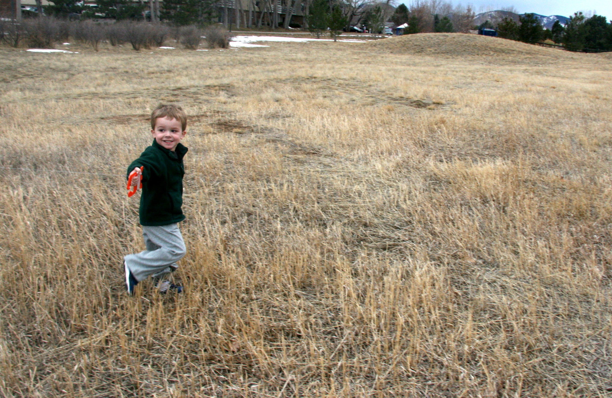 We decided there just wasn’t quite enough wind and that it was time to head back.  When we got back to the west side of our apartment though, the wind picked up again, and we went back out into the field.  This time, we had super duper kite flying success.