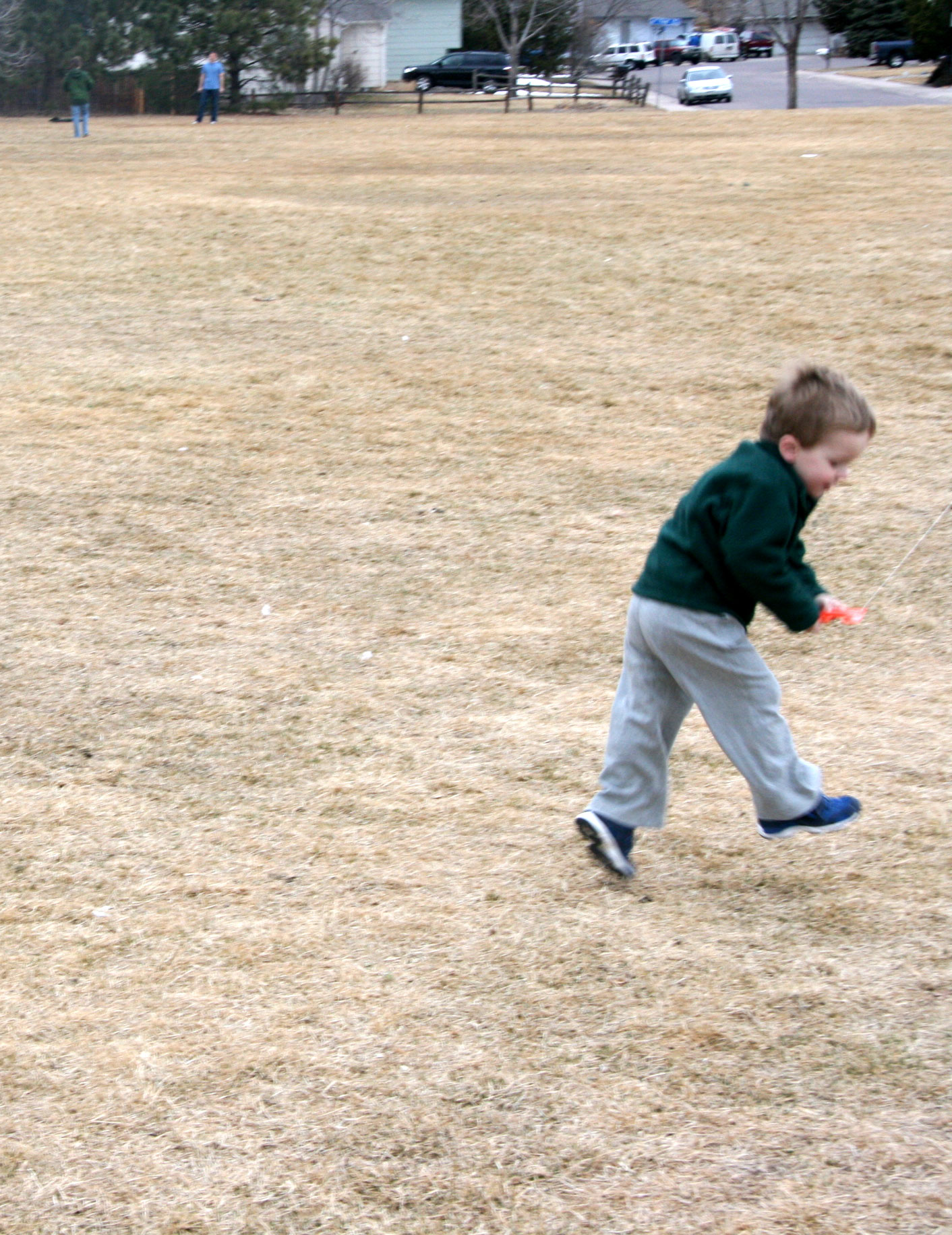 But the kite didn’t take Davey.  Davey suddenly relinquished the kite to the wind.  David took off to retrieve it with Davey right behind him.