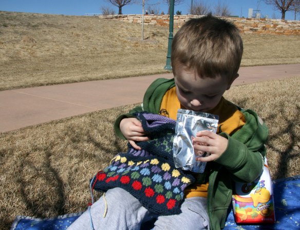 We spent a lot of time outside today too. Davey and I had to run a couple of errands which ended up at the park near the library. We had a picnic.