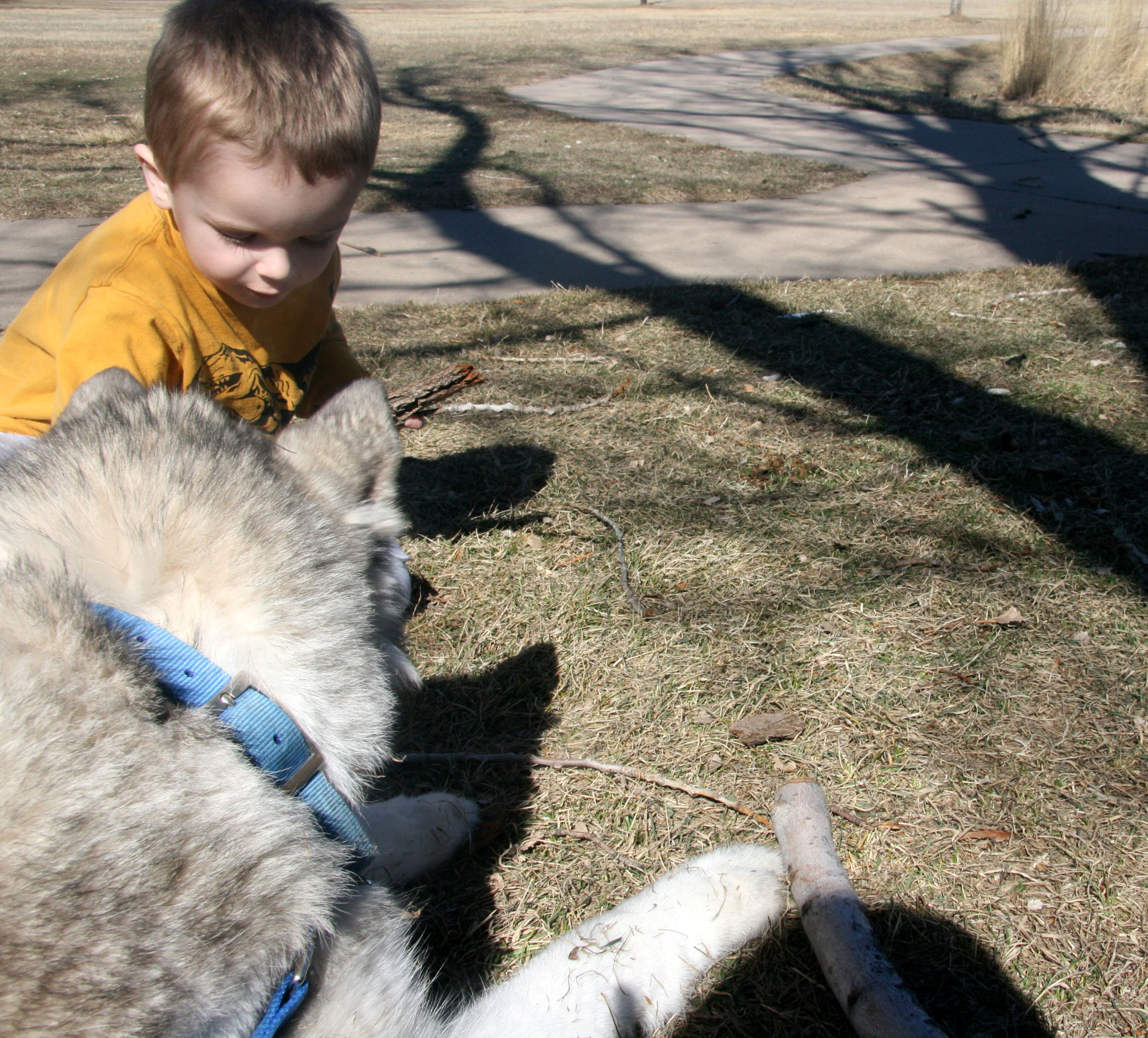 Davey said, “Mommy, I need to corral Timber!” (See the carefully placed sticks?)