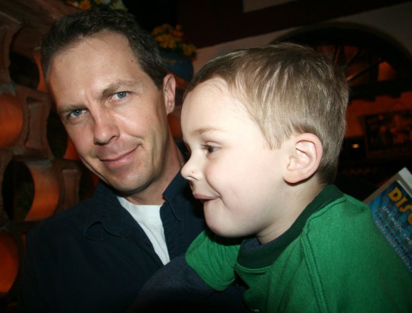 The line was just like old times. Davey waited patiently and not patiently. It varied. Here is David holding him for awhile.