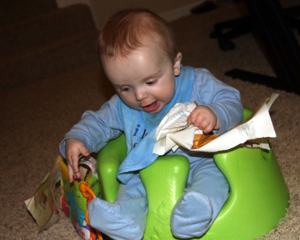 As 4 month old,  he wanted to try to eat paper.