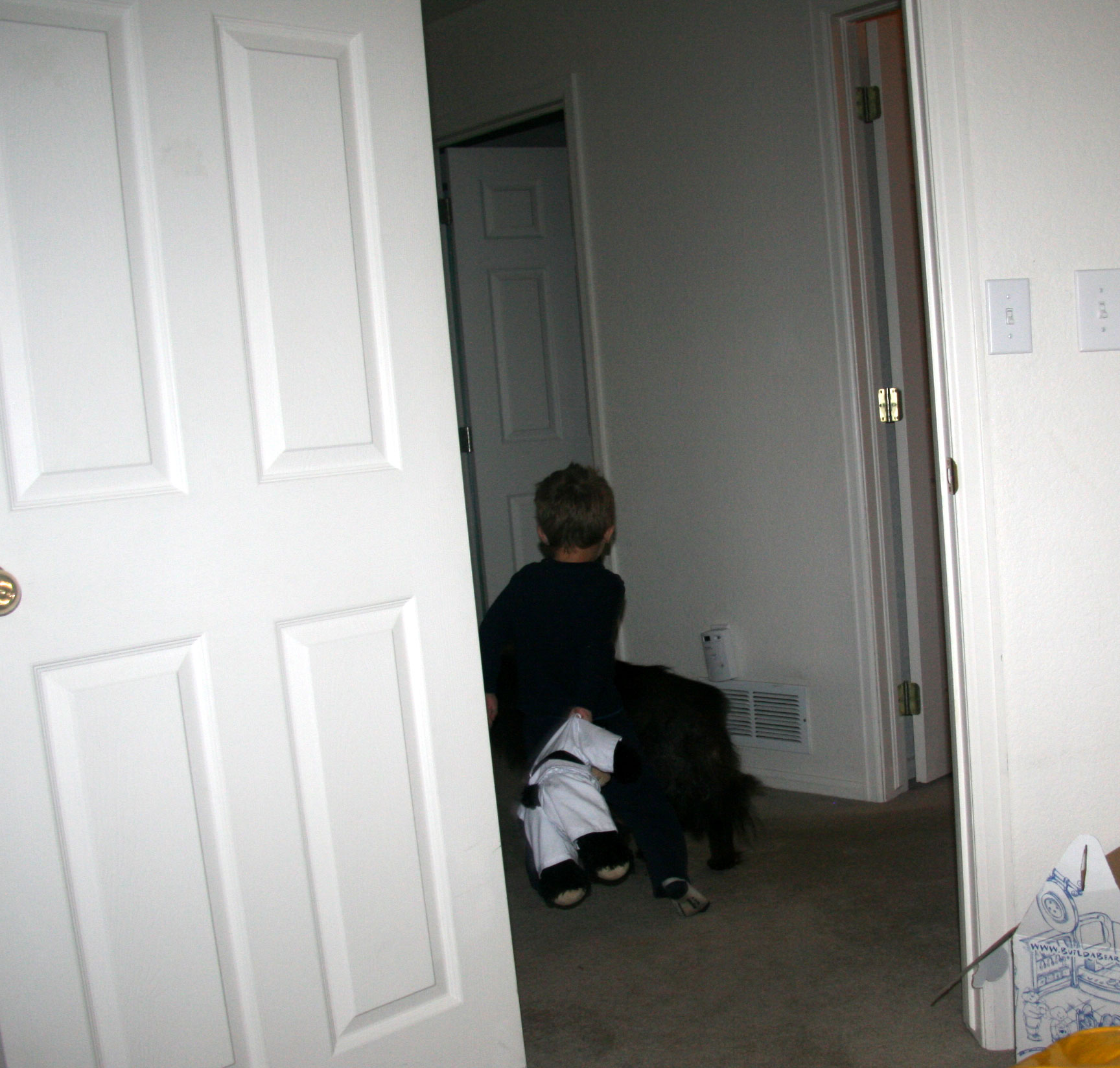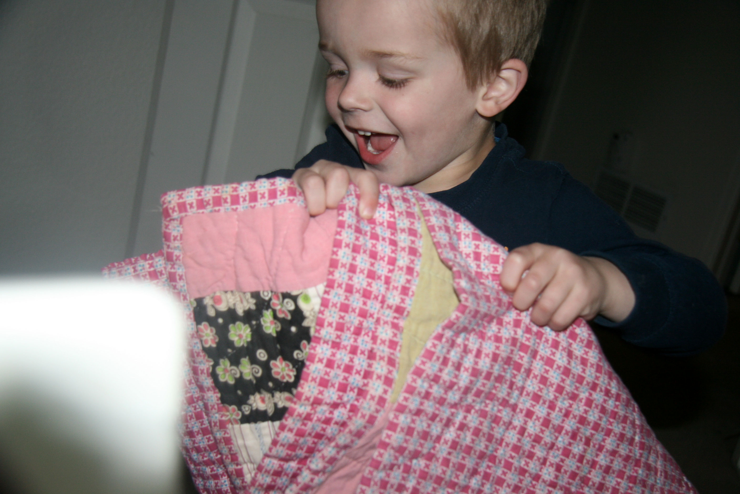 Last night Davey decided he was going to put Koko to bed and get her all tucked in.