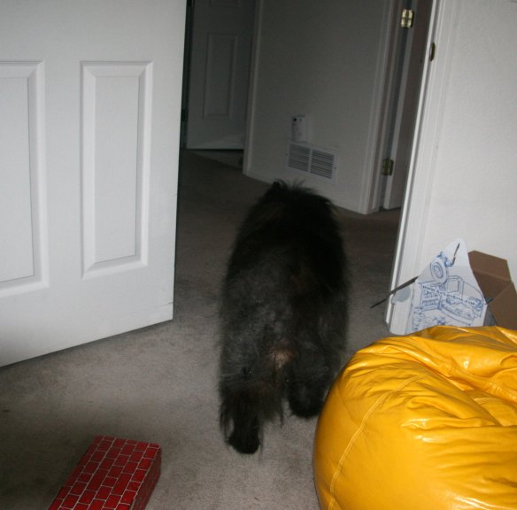 Koko decided she’d better leave the room. (Poor old girl. Her posture reminds me of Eeyore.)