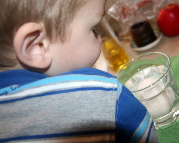 My sister and family sent Davey a “dinosaur egg”. It is supposed to “hatch” after about 24 hours in water. There is a green reptilian scale kind of peeking out now. It’s freaking me out a little. Davey is fascinated and keeps checking on his dinosaur.